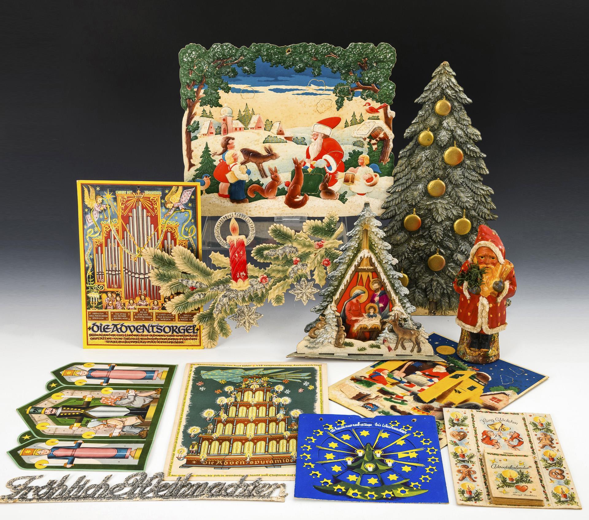 Santa Claus as a candy box (insert missing), 2 Christmas trees, 7 Advent calendars etc. Parts with defects.
