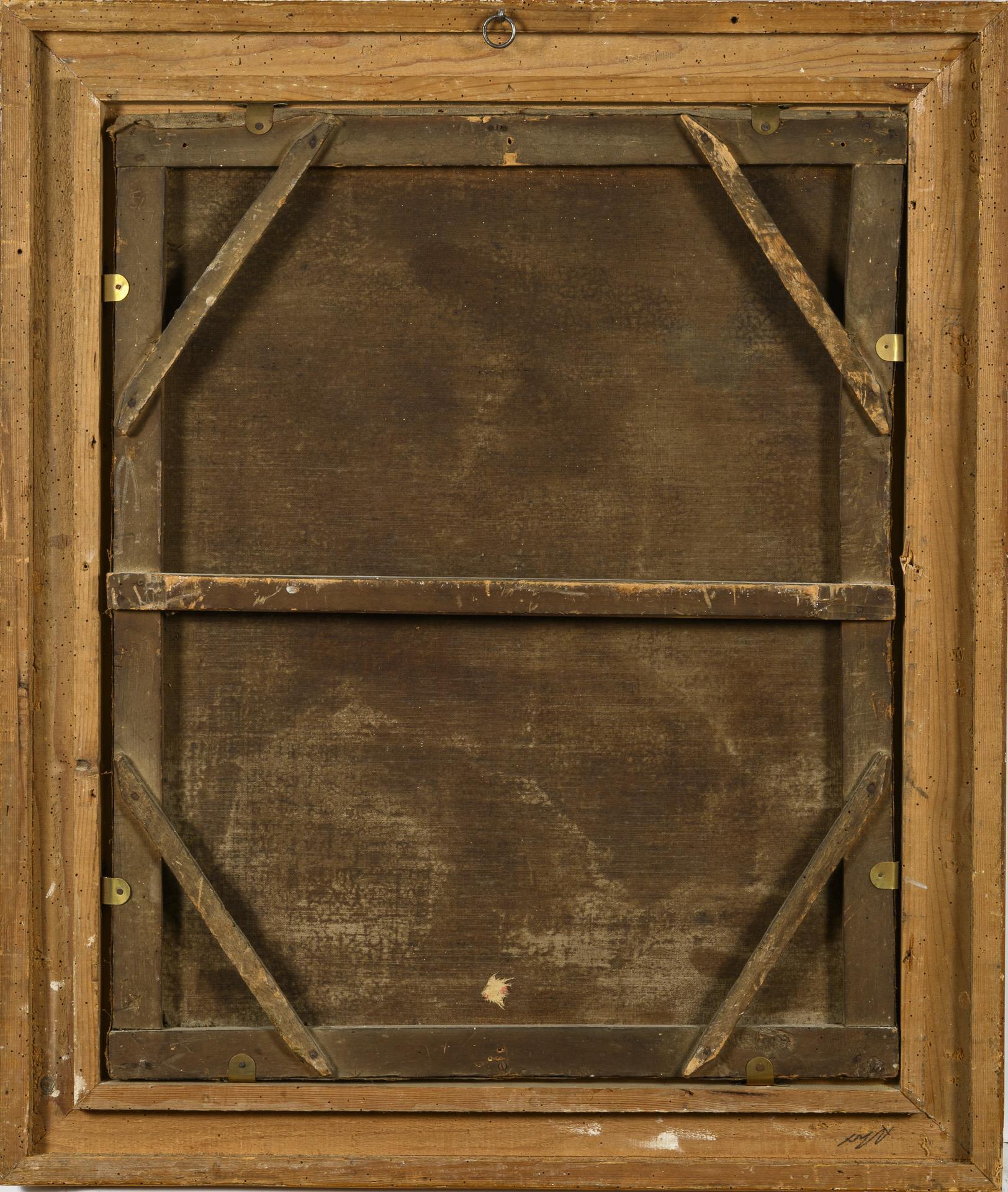 73 x 60 cm. Framed : 90 x 76 cm (gold stucco frame); 5.6 kg.