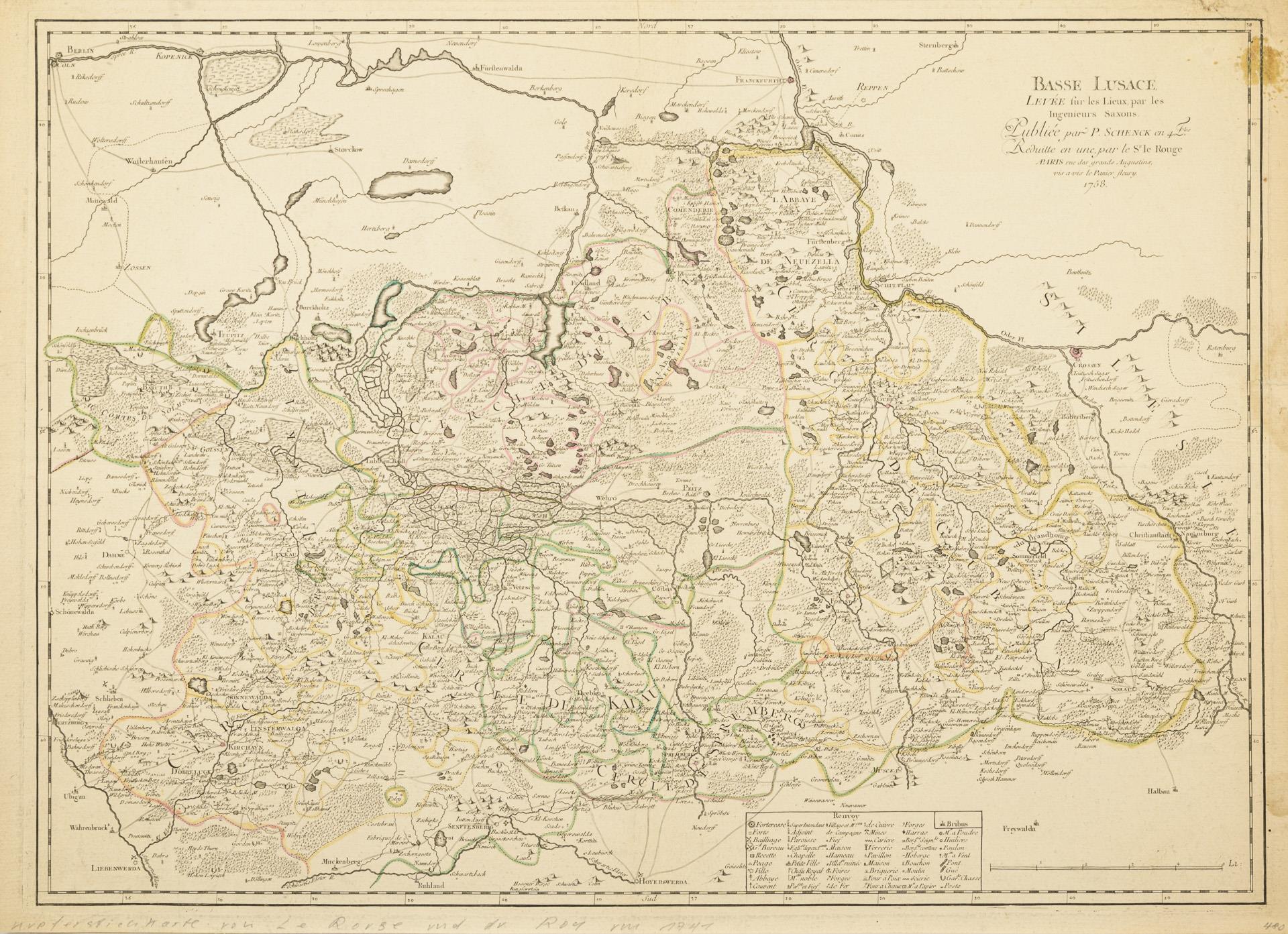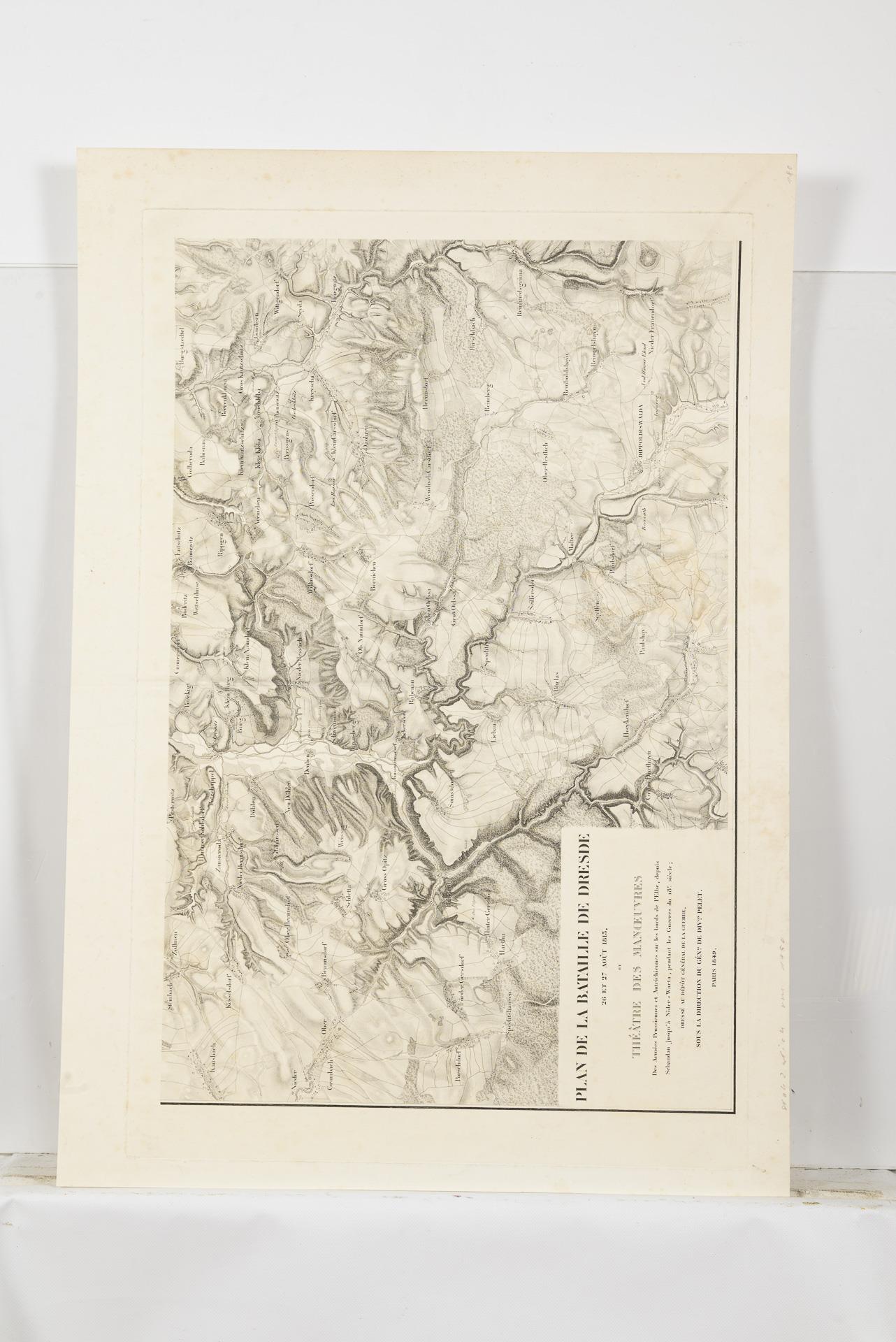 Homann Erben: "Comitatus Hohnstein", (sheet 53 x 65 cm). / Schenck: "Basse Lusace", 1758, (sheet 52 x 71.5 cm). / "La Haute Lusace contenant la cercle de Budissin et de Goerlitz", (sheet 53.5 x 73.5 cm) / Hohmann Erben: "Circuli Supe Saxoniae", 1757, (sheet 52 x 62 cm). / "Plan de la Bataille de Dresde" 1813, steel engraving from 1849, (sheet 58 x 83 cm).