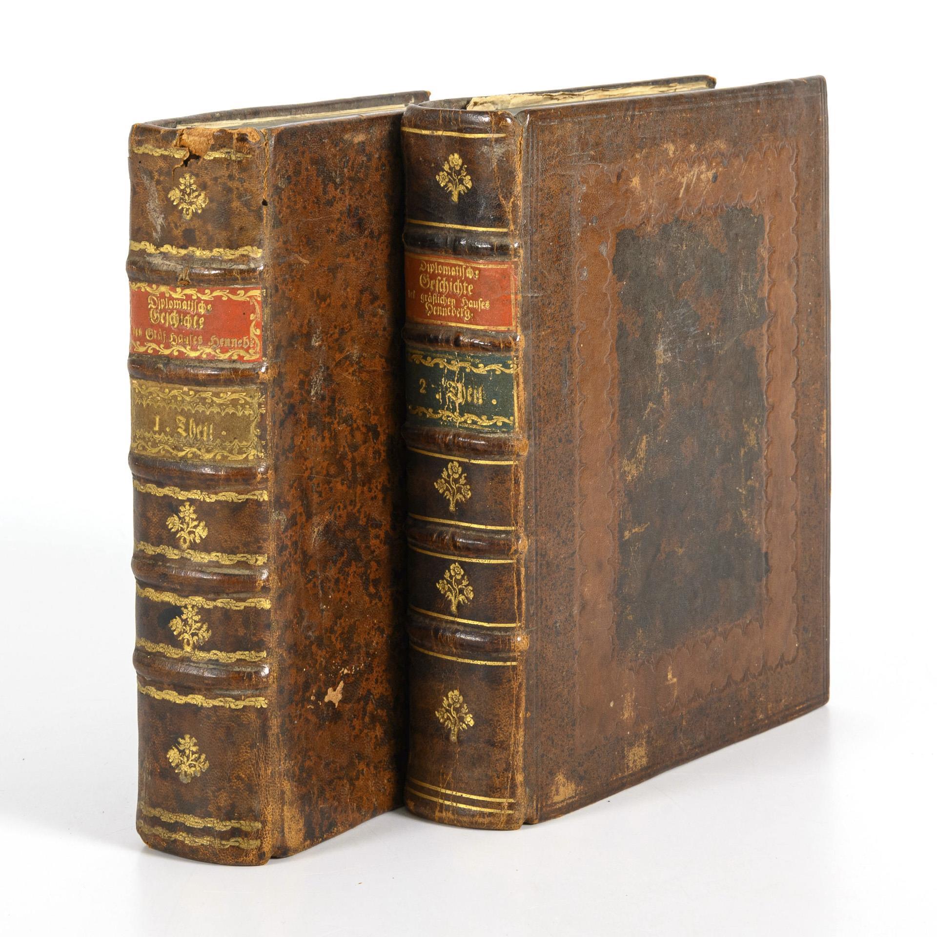 With documents and copper plates, in the original leather binding. Volume I: 38, (4), 794 pages with 255 documents and 9 copper plates; In Commißion bey Adam Friedrich Böhme, Leipzig 1788 / Volume II: (16), 543 pages with 300 documents and eleven copper plates; Printed and published by Johann Gottfried Hanisch, Hildburghausen 1791. Not collated.