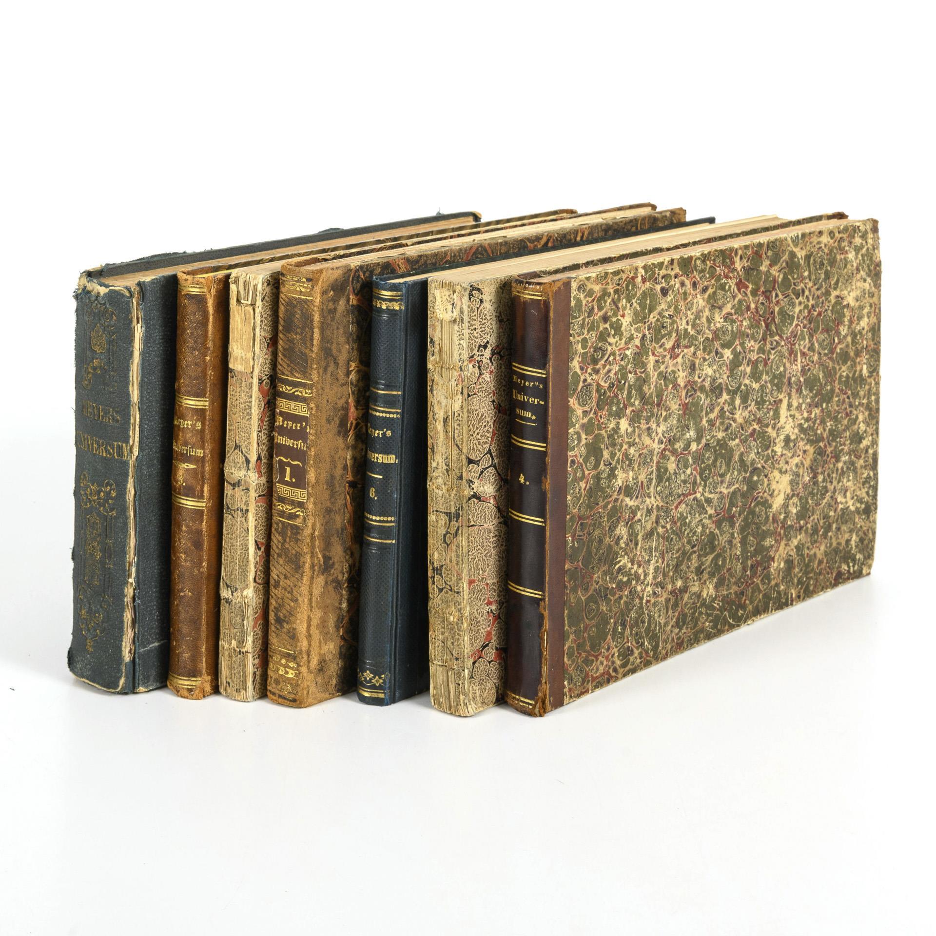 Volumes 1 (2x available), 3, 4, 5, 6 and 9, in various bindings of the time. Steel engravings with views from all over the world and the corresponding explanations. With traces of use commensurate with age.