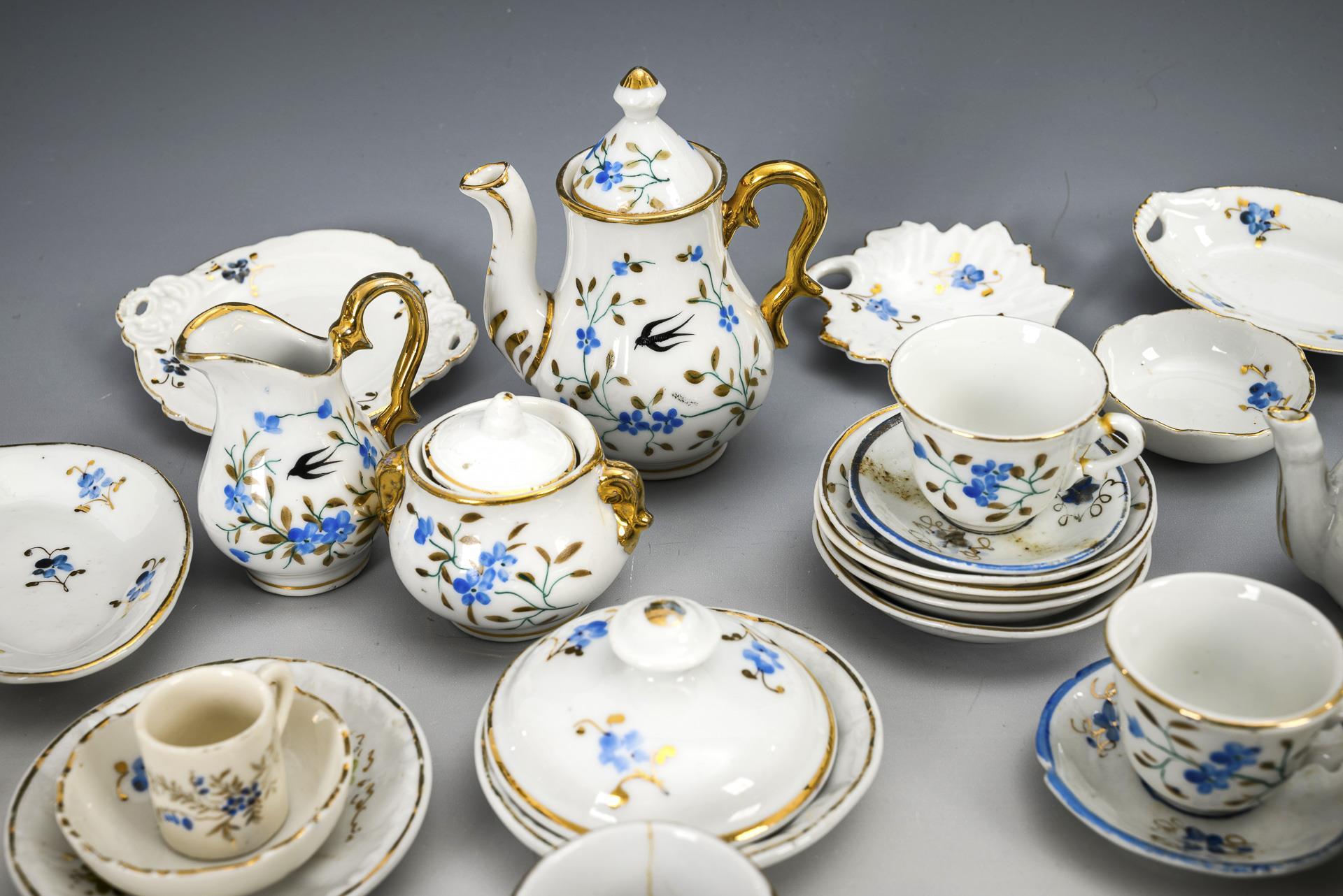 Extensive porcelain service for the doll's house.