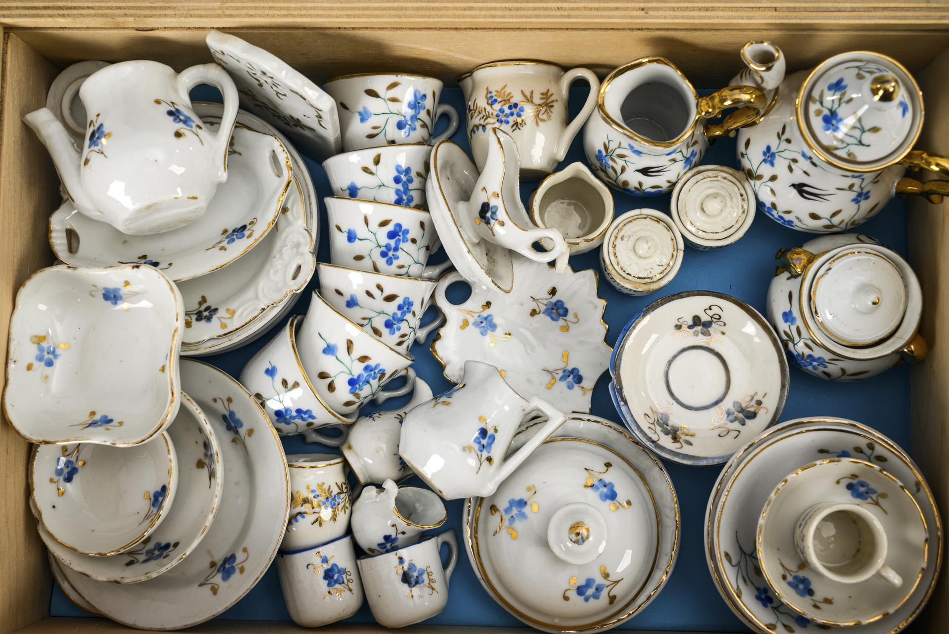 Extensive porcelain service for the doll's house.