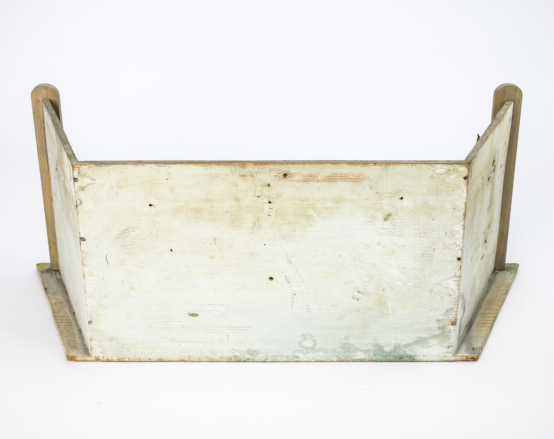 Wood, painted gray on the outside, old wallpaper on the inside. 20.5 x 51 x 19 cm. 1 kg.
