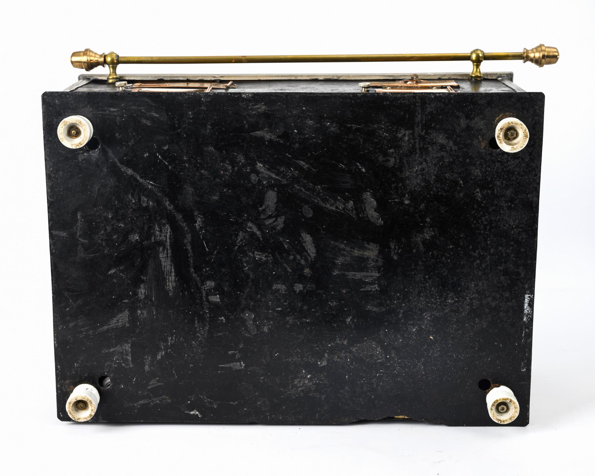 Forged sheet metal, copper, brass. 23 x 55 x 38.5 cm, height with chimney 53.5 cm. Approx. 6.5 kg.