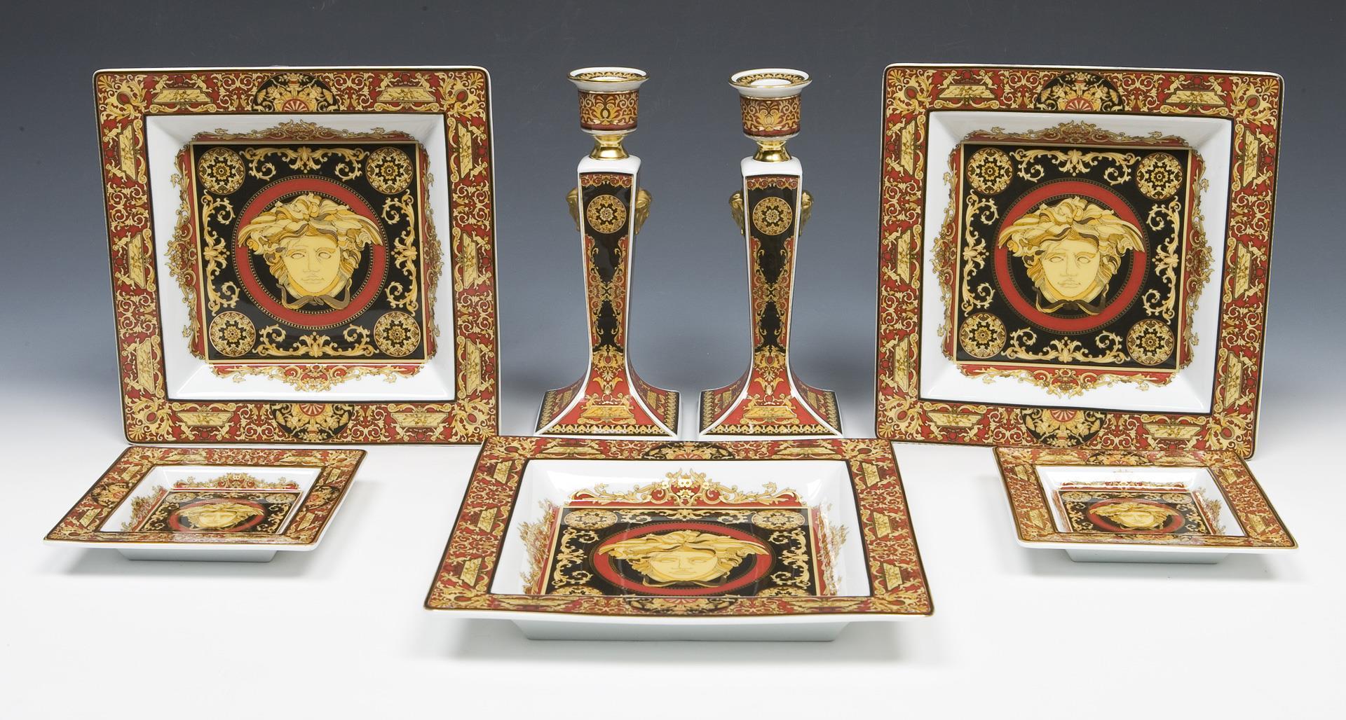 Versace pair of candlesticks, 5 bowls. Rosenthal Studio line.