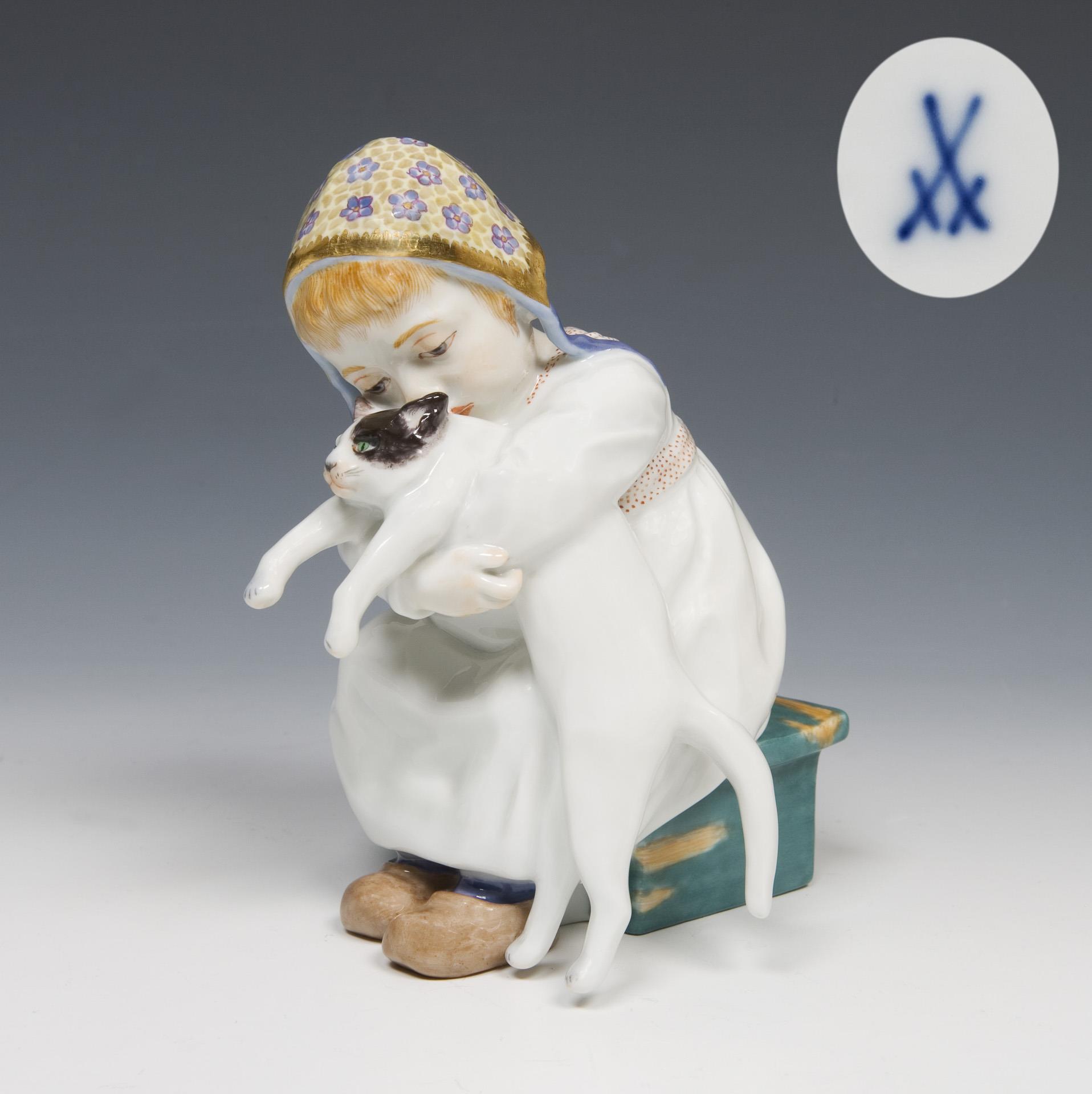 Model year: 1905, from a series of 12 playing children, painted in color, painted gold. Painter's mark, impressed marks, sword mark.