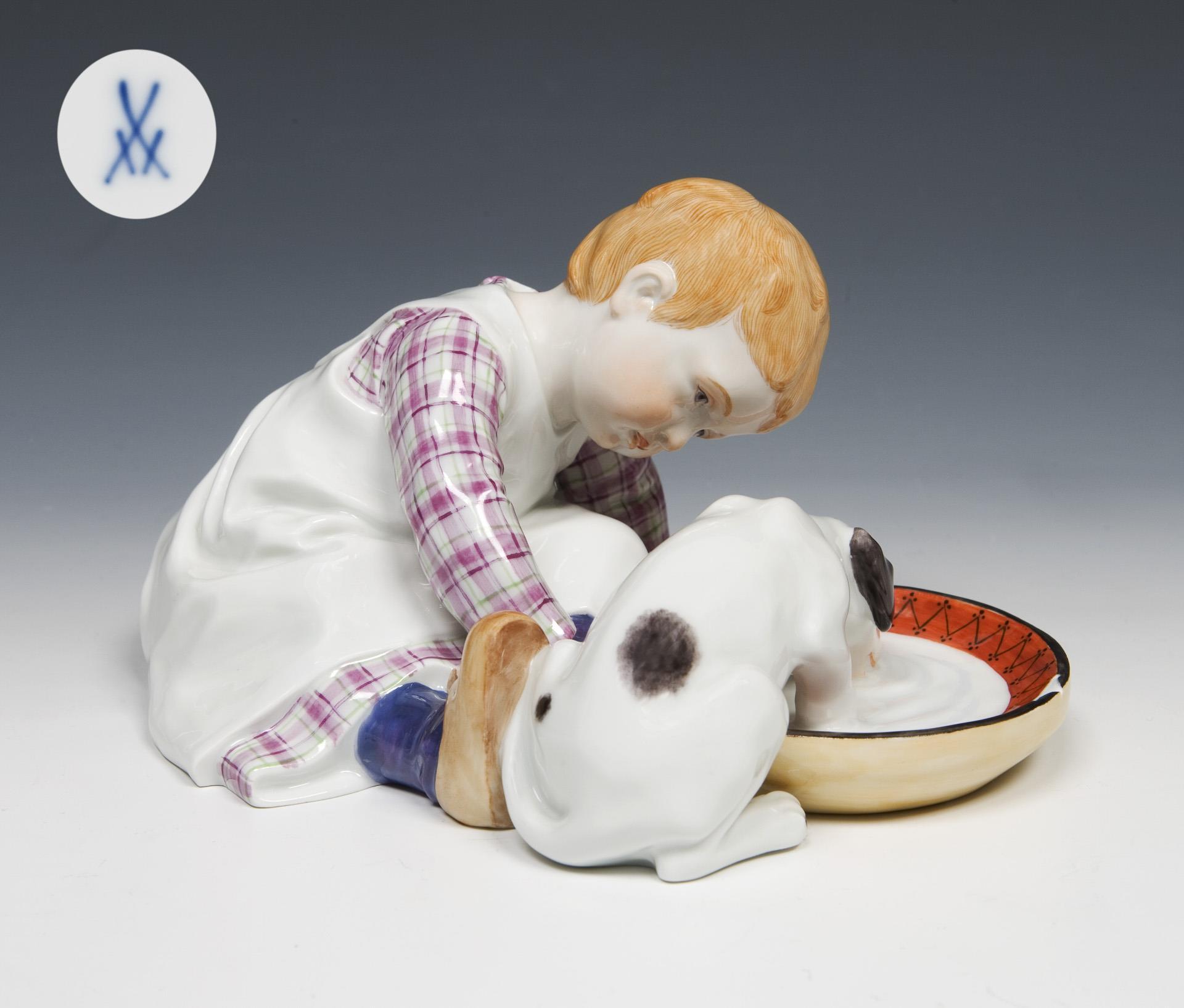 Art Nouveau figurine: child with dog. Meissen.