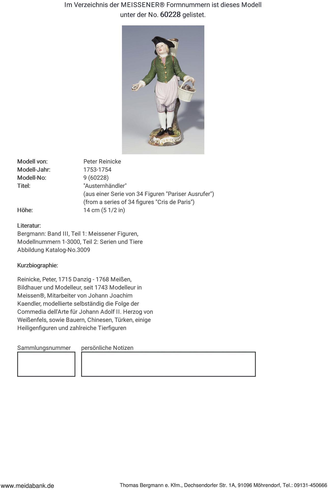 Reinicke, sculptor, modeller in Meissen since 1743, created numerous figures, collaborator of Johann Joachim Kaendler. Meissen manufactory price: 3190,- Euro * Partner auction Bergmann.