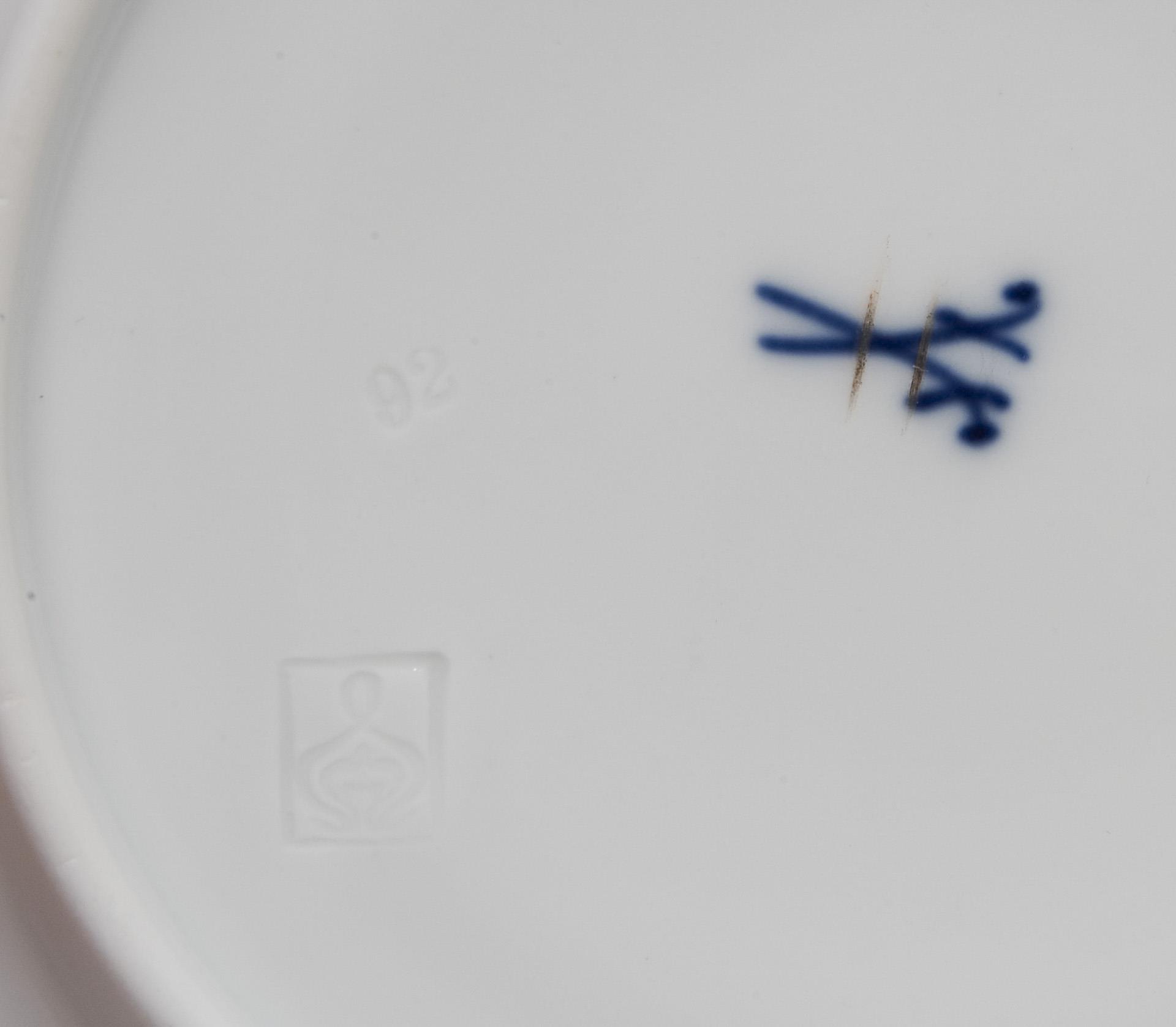 Model year: 1903, painted green, saucer with wavy lines in relief, so-called "whiplash". Press marks, sword marks, artist's signature on cup and saucer.
