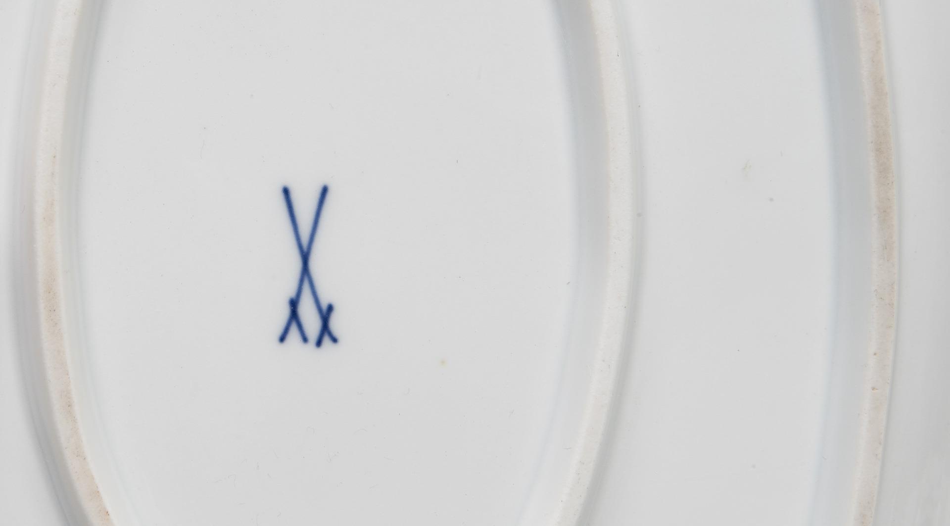 Model year: 1920, scaled rims in relief, ornamental and floral painting in green, purple and gold, gold staffage. Press marks, sword marks, six sword marks with dot, pot and plateau 1935-1947.