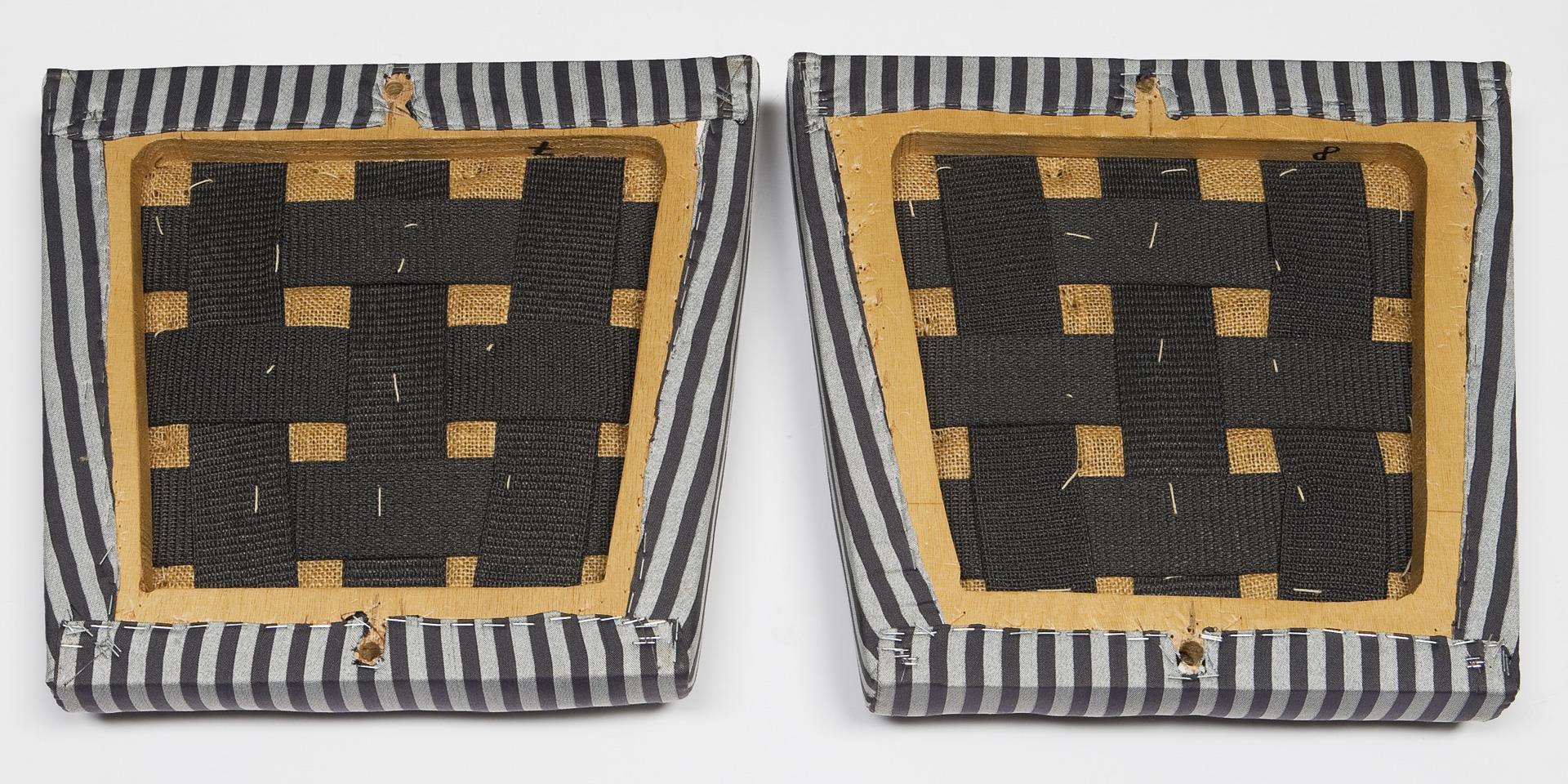 Mahagoni, furniert und massiv, Ahorn-Fadenintarsien. 83 x 47 x 39 cm, Sitzhöhe: 47 cm.