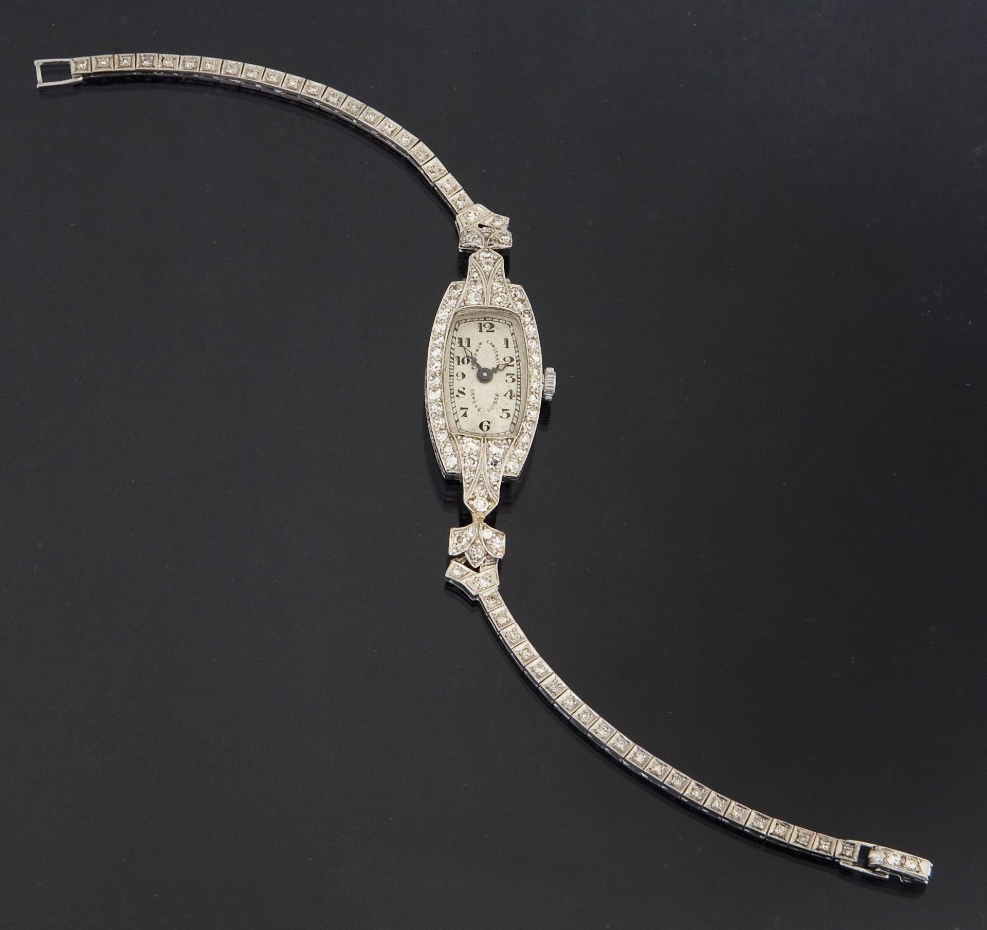 Platinum, 102 small diamonds. Length: 17.5 cm. 16.5 grams.