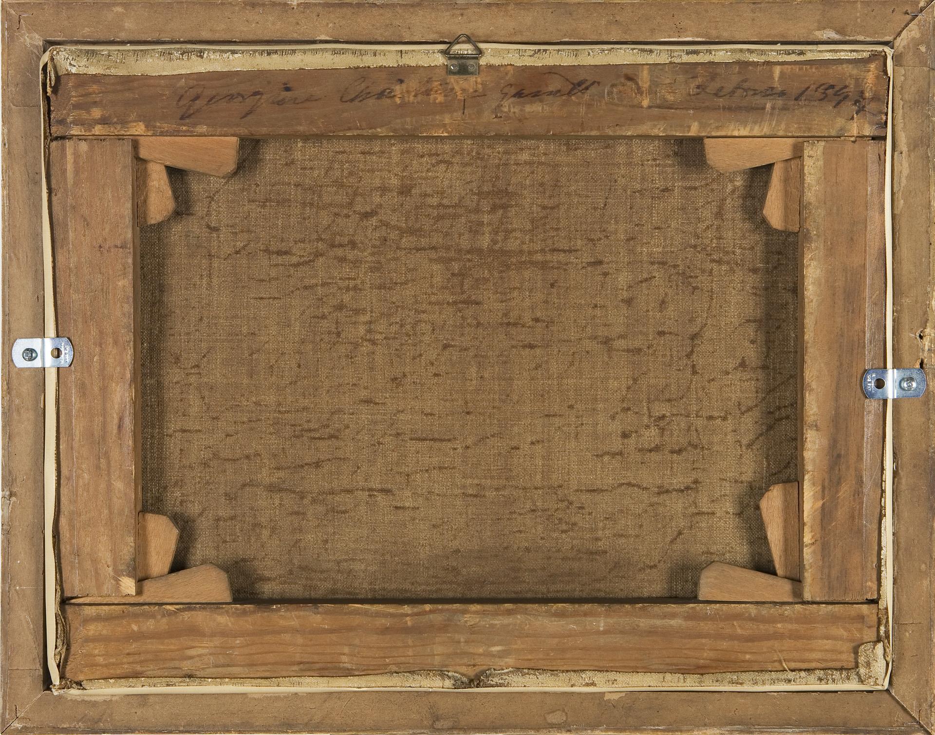 Small-format genre scene with various type depictions, whereby the artist juxtaposes upright, well-behaved people with the impassive inspector. Indistinctly inscribed on the reverse of the stretcher, dated: 1847. Bronze profile frame. Doubled at the edge.