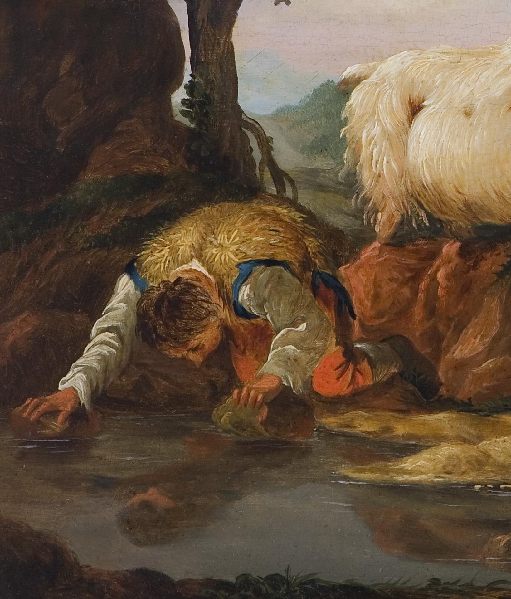 A version with identical motif by Johann Heinrich Tischbein the Younger (oil on canvas, 68 x 90 cm) can be found in the Neue Pinakothek in Munich. Mint profiled frame. Horizontal tear.