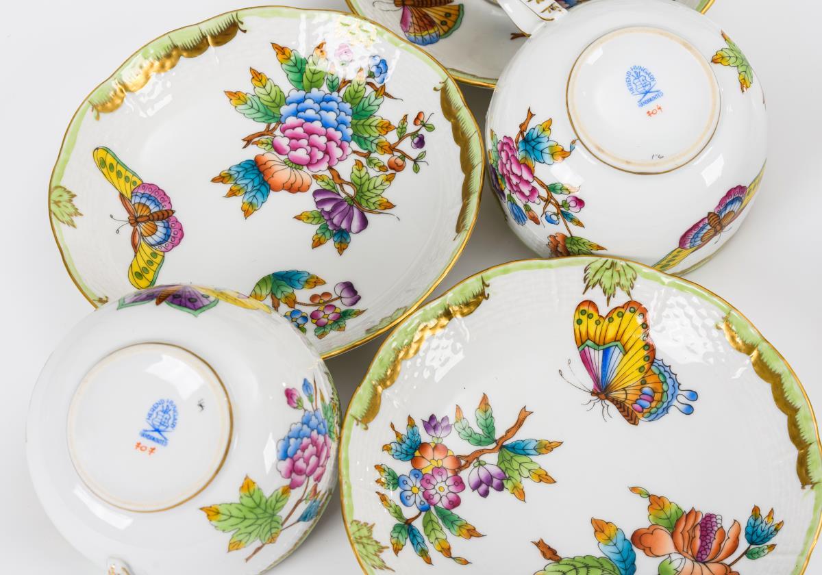 6 Tassen, 6 UT, Milchkännchen, 2 Kuchenteller.