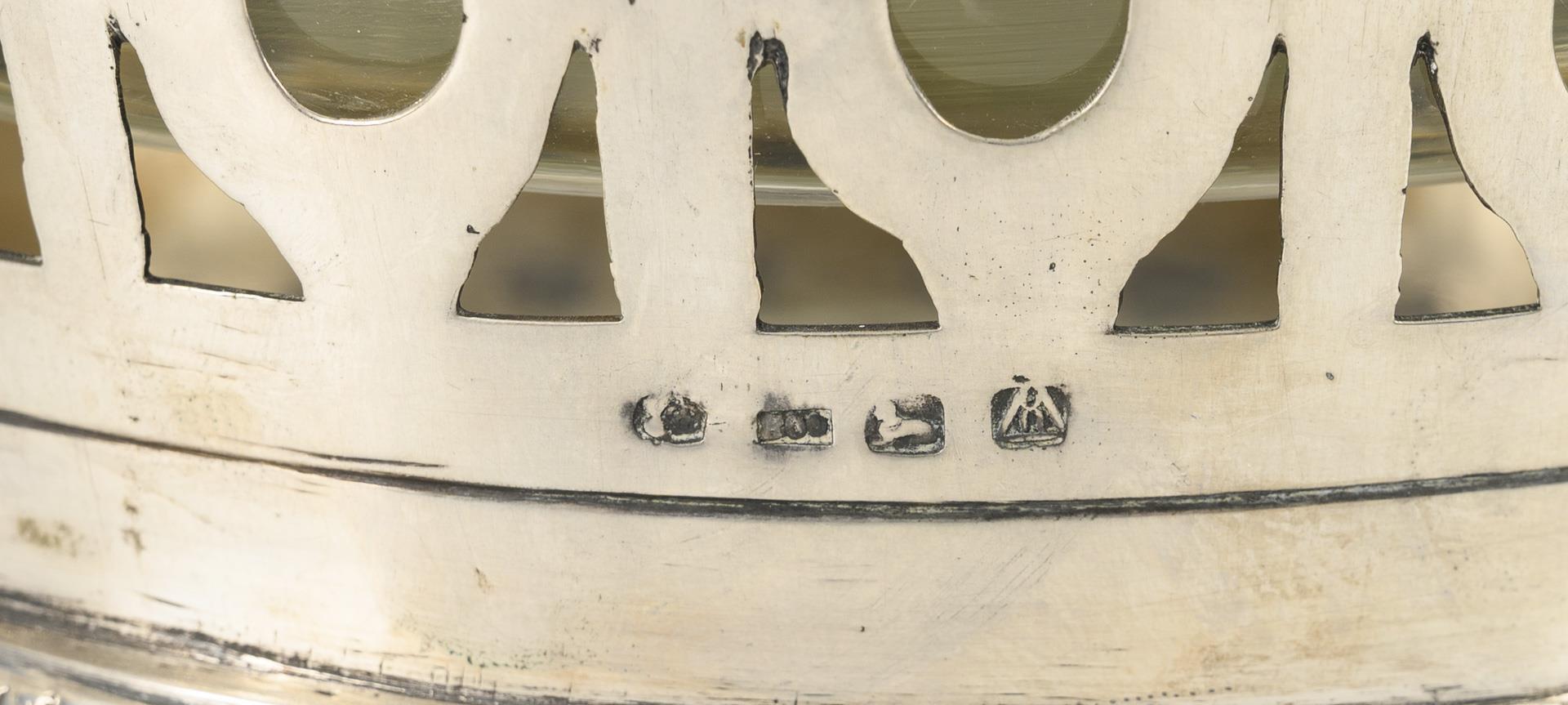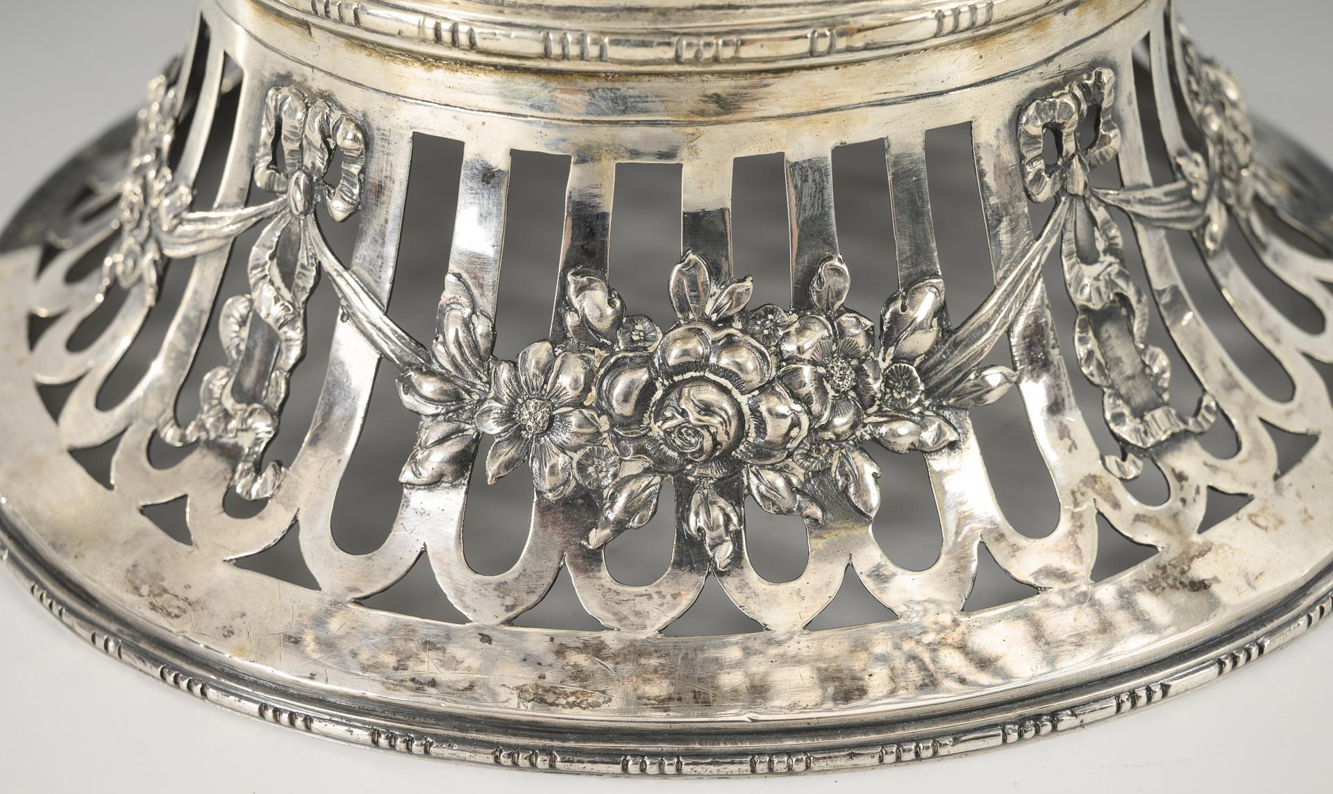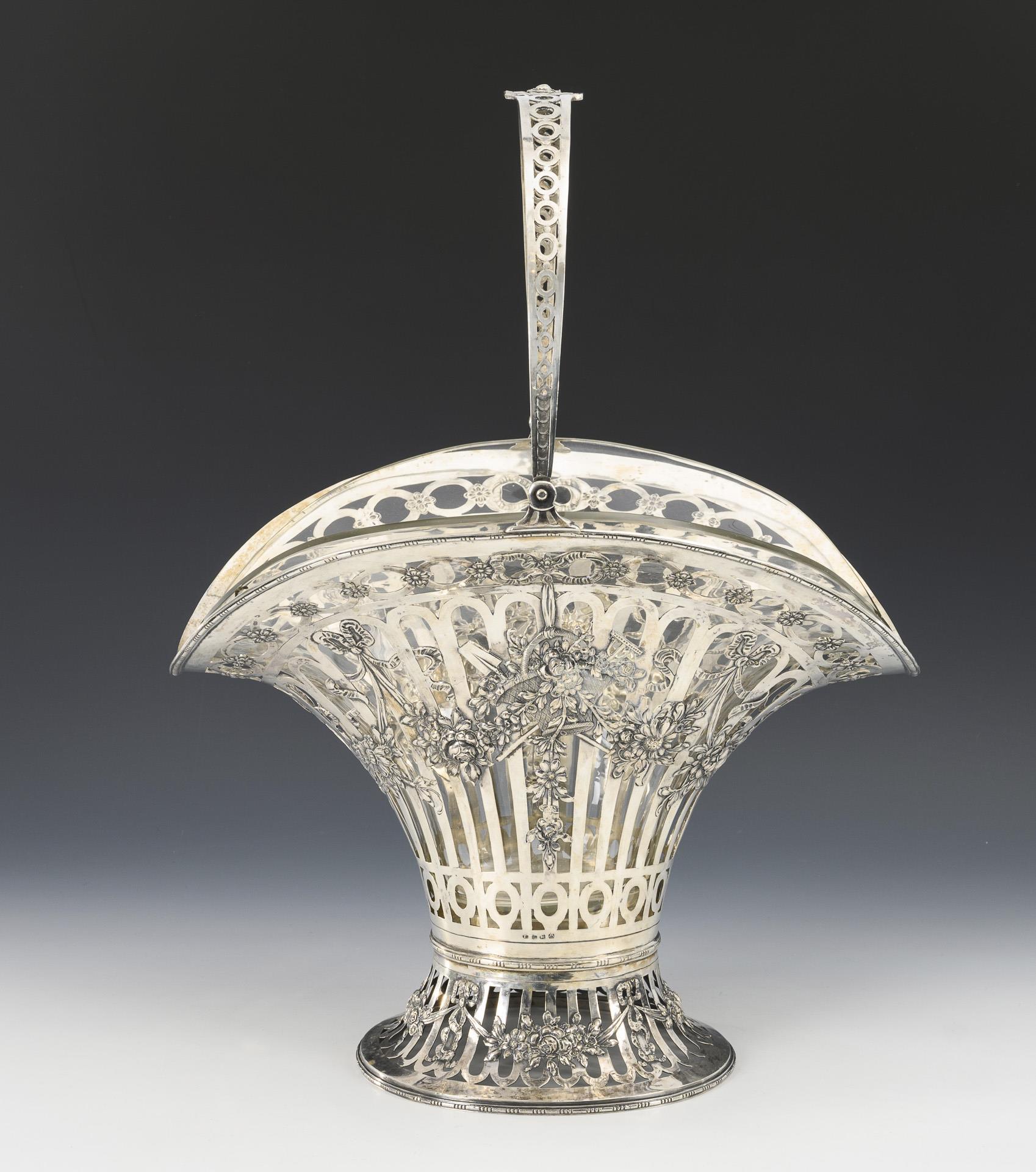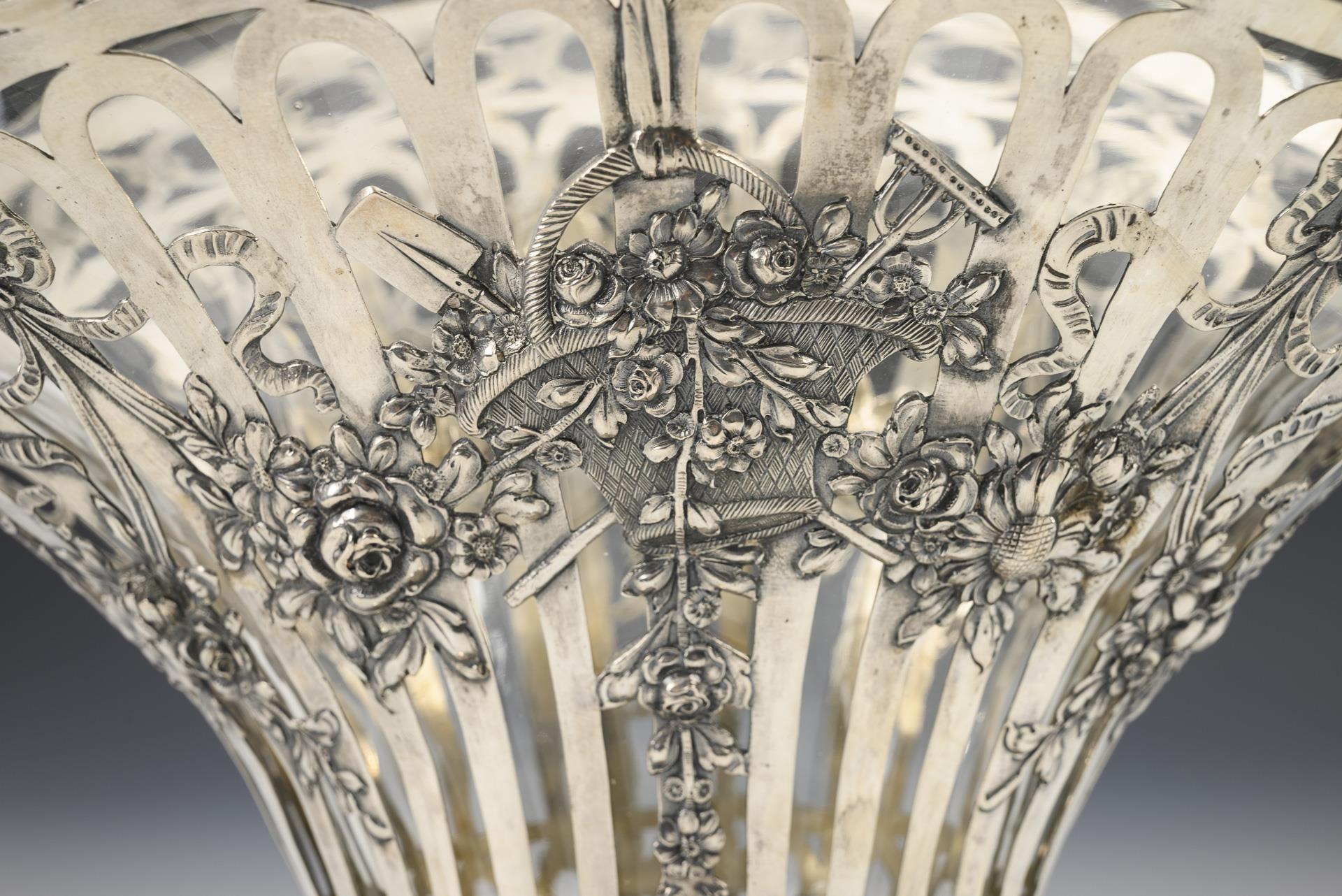 Clear glass, silver. 34 x 33 x 40 cm, h with handle 52 cm. Silver 1853 g, total weight approx. 4400 g.