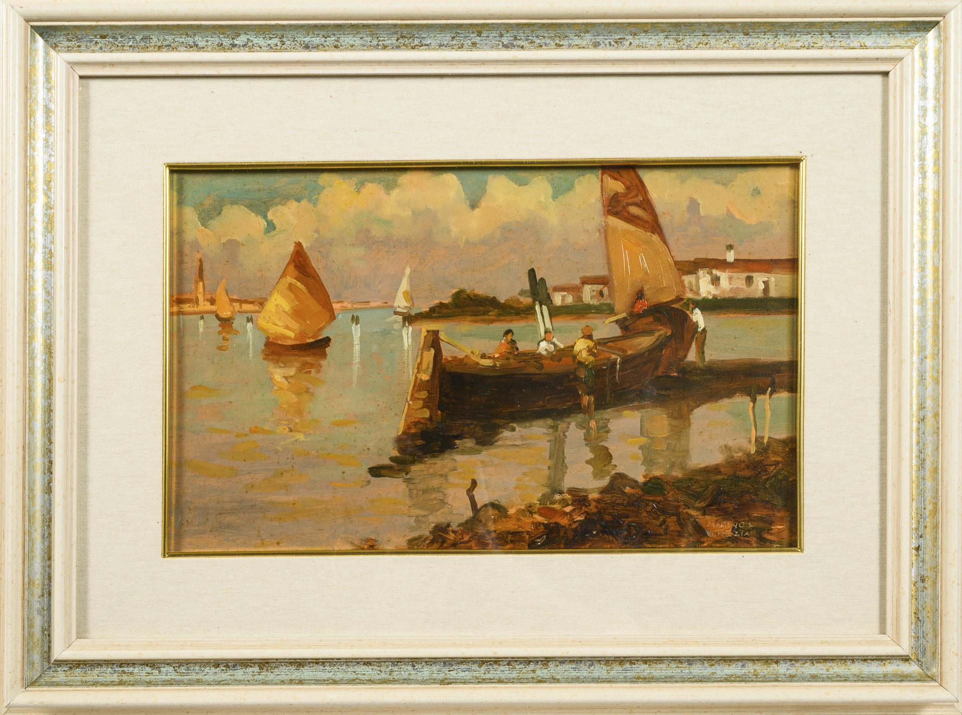 Oil/wood pulp. Indistinctly signed lower right with the addition Venice. 20th century