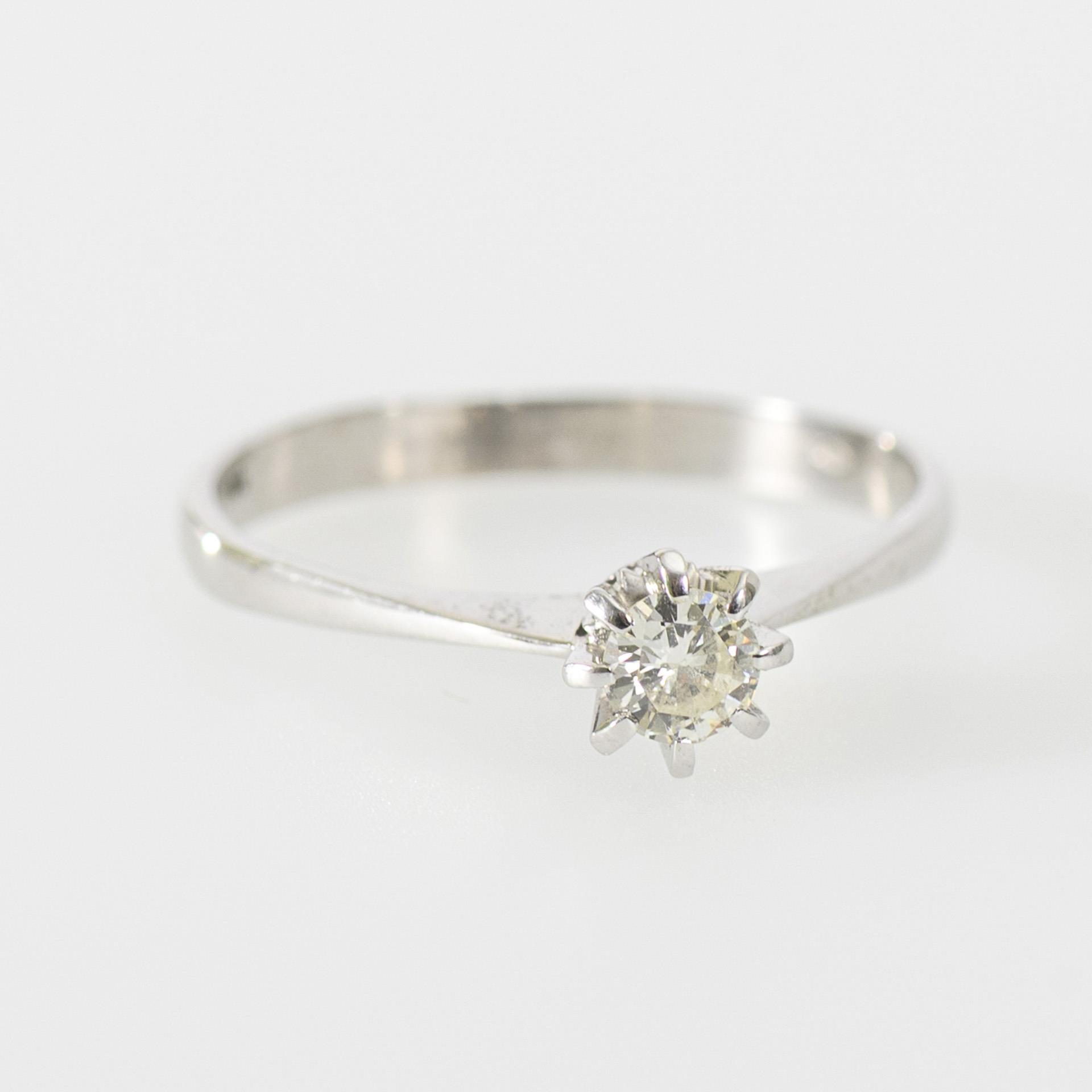 Stamped 750 white gold. Ring size 57.5; diameter of the brilliant-cut diamond (measured in setting) approx. 0.4 cm. 2,2 g.