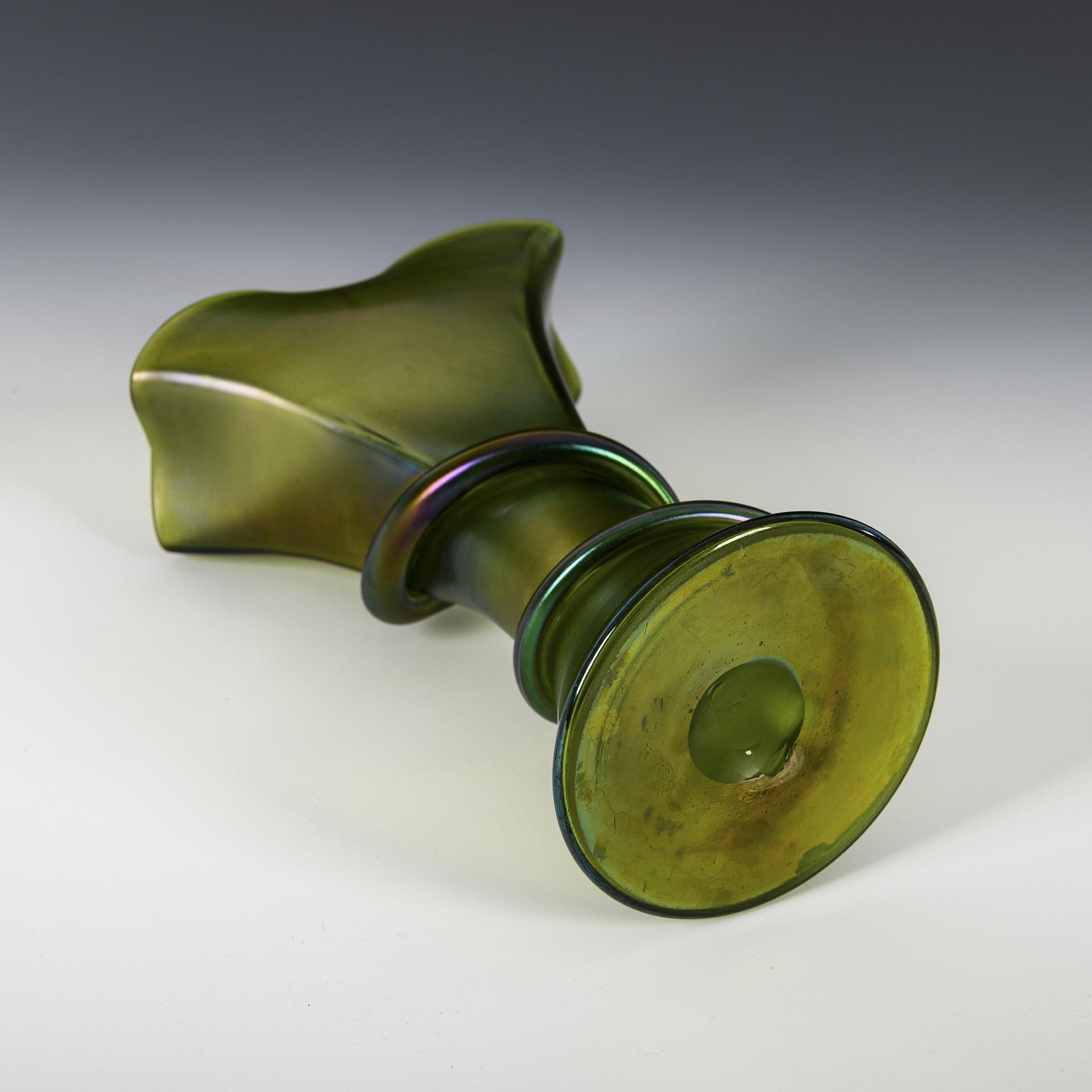 Green glass, iridescent. H 25.5 cm. 860 g.