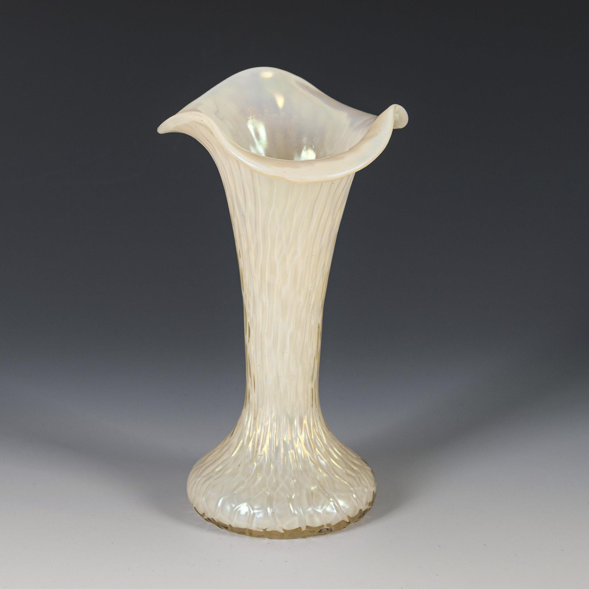 Colorless glass with opal white underlay, iridescent. H 17 cm. 270 g.