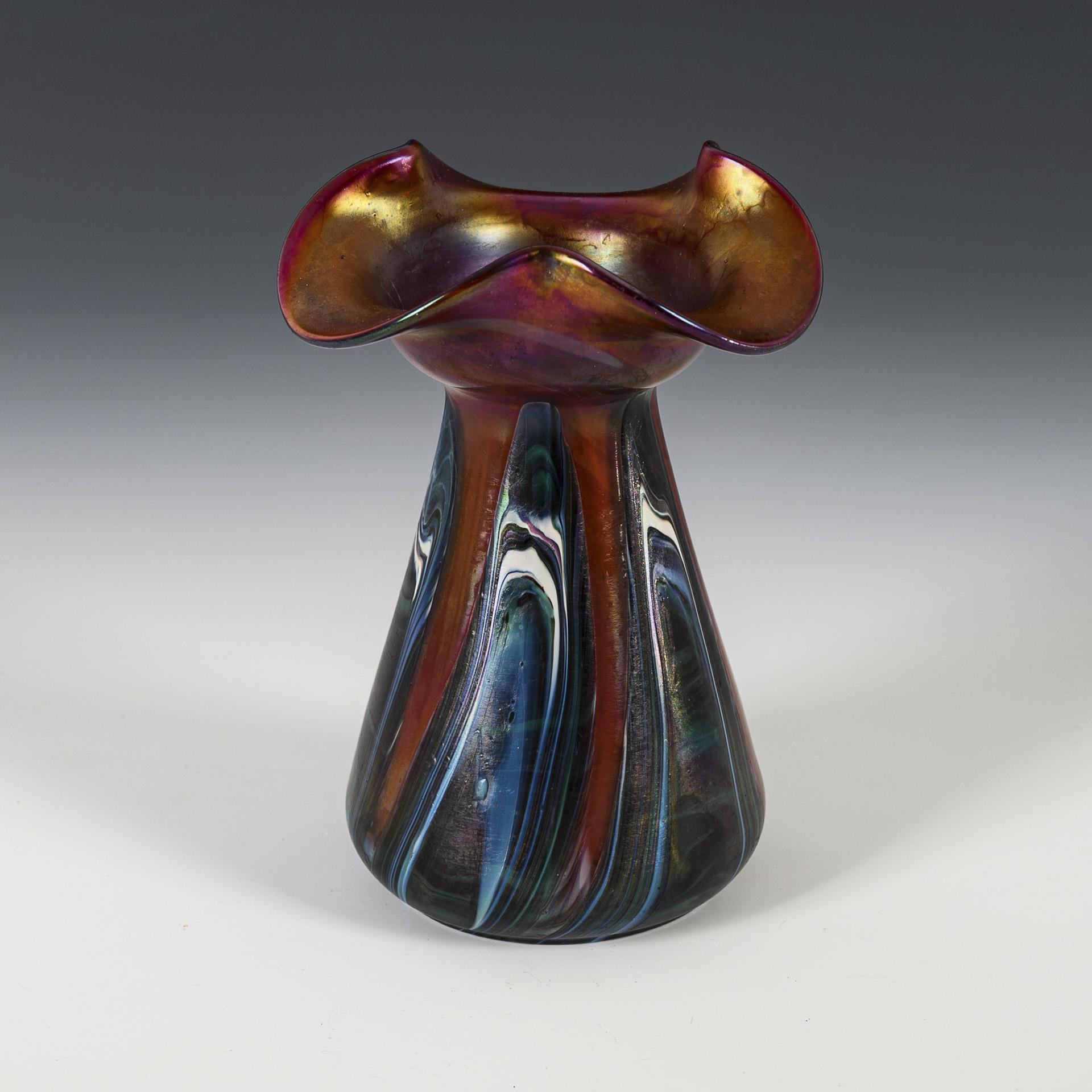 Conical vase with bowl-shaped widened, triple lobed mouth; pontil mark.