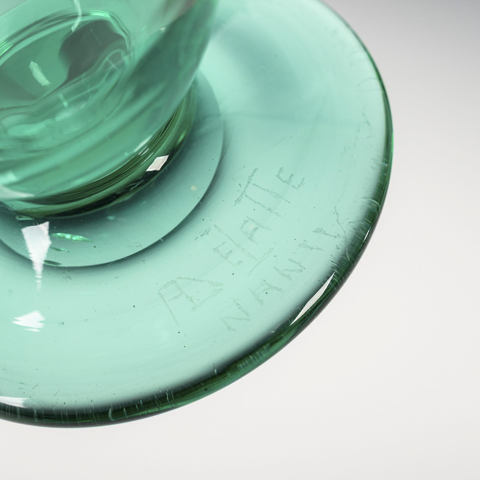 Light green, transparent glass. H 24 cm. Approx. 1.1 kg.