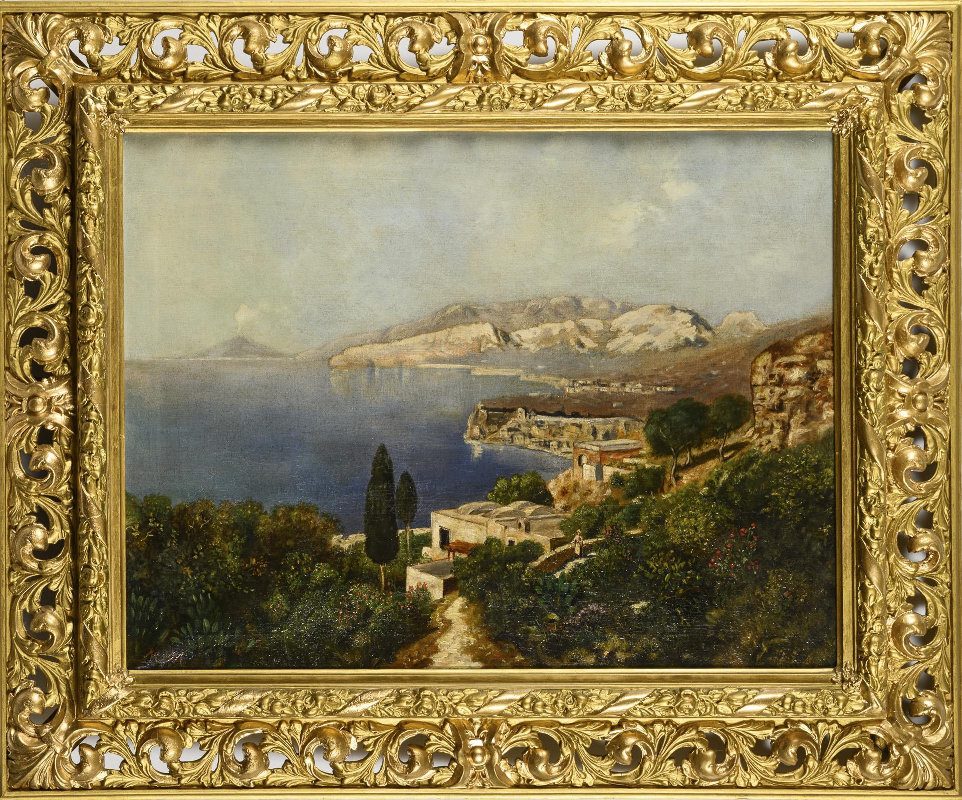 58.5 x 76.5 cm. Framed : 83 x 101 cm (ajour carved gilt stucco frame); 8.8 kg.