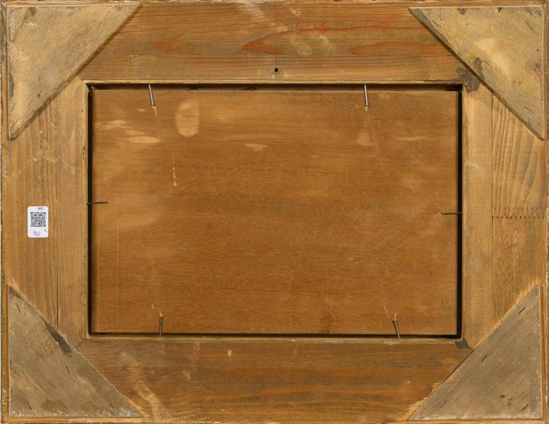 20 x 30 cm. Framed : 35 x 45 cm (gold stucco frame); 1.5 kg.