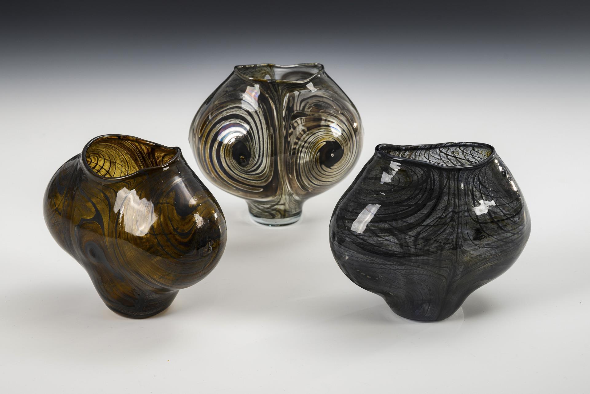 3 artist glass vases. Lauscha.