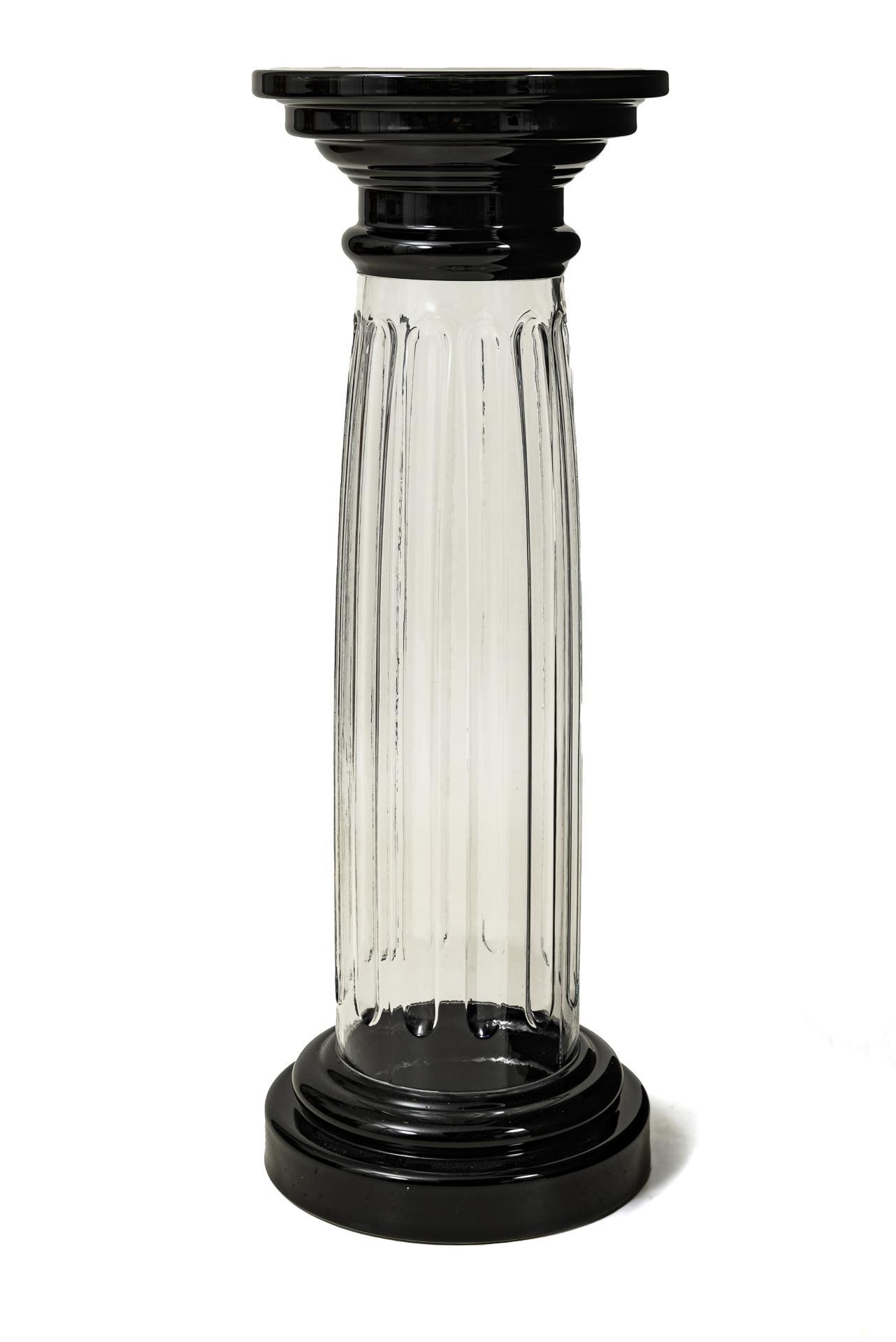 Antique glass column with round stepped capital and base and a convex shaft with wide fluting. Slight scratches.
