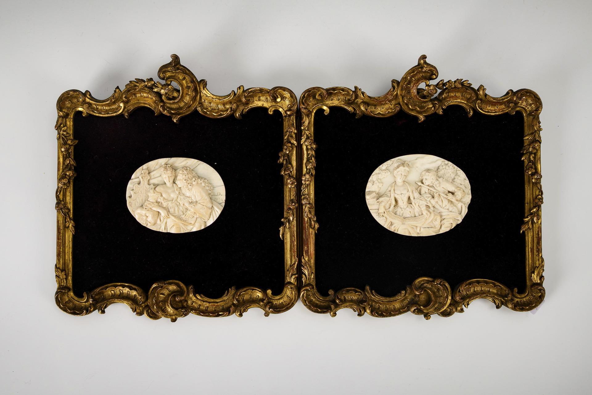 Pendant framed ivory reliefs from 1753