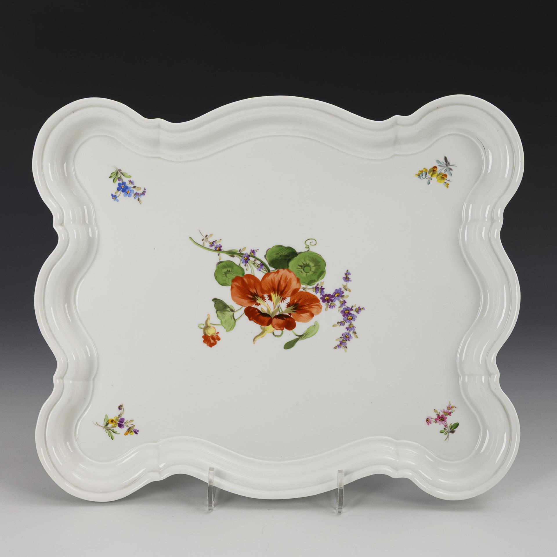 Rectangular tray with the depiction of nasturtium in the mirror.