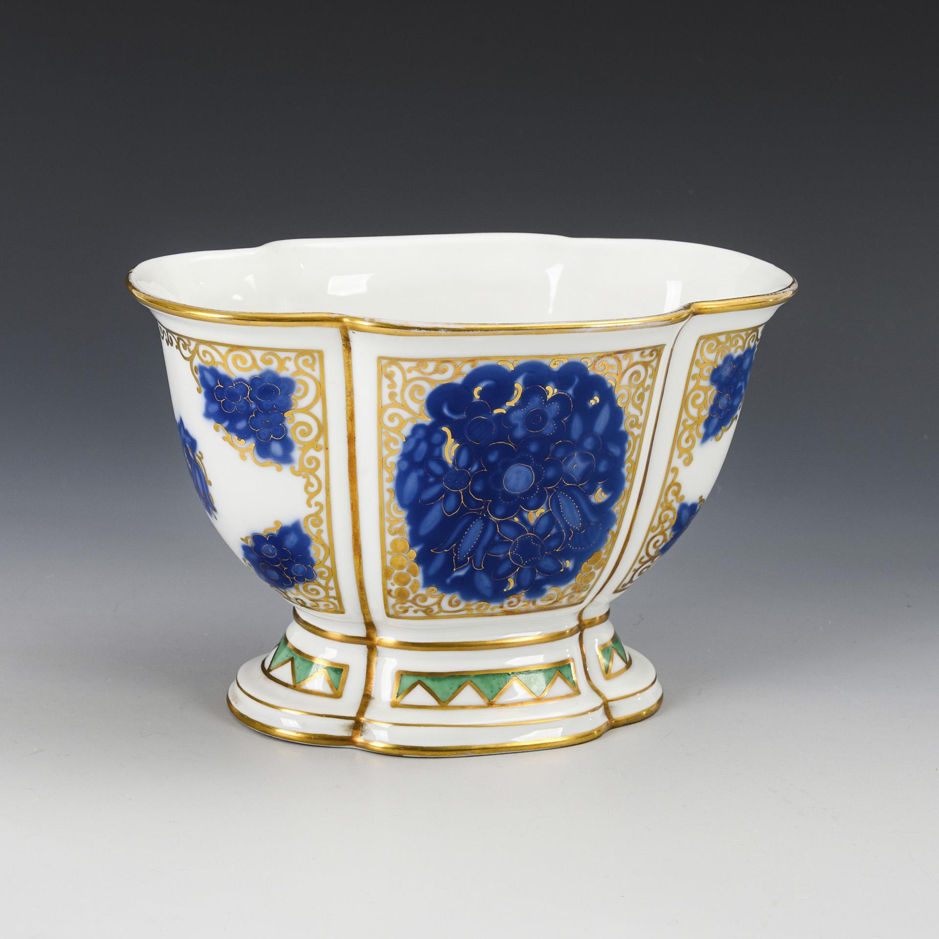Unglazed blue flower painting, ornamental gold painting. H 13.5 cm. 680 g.
