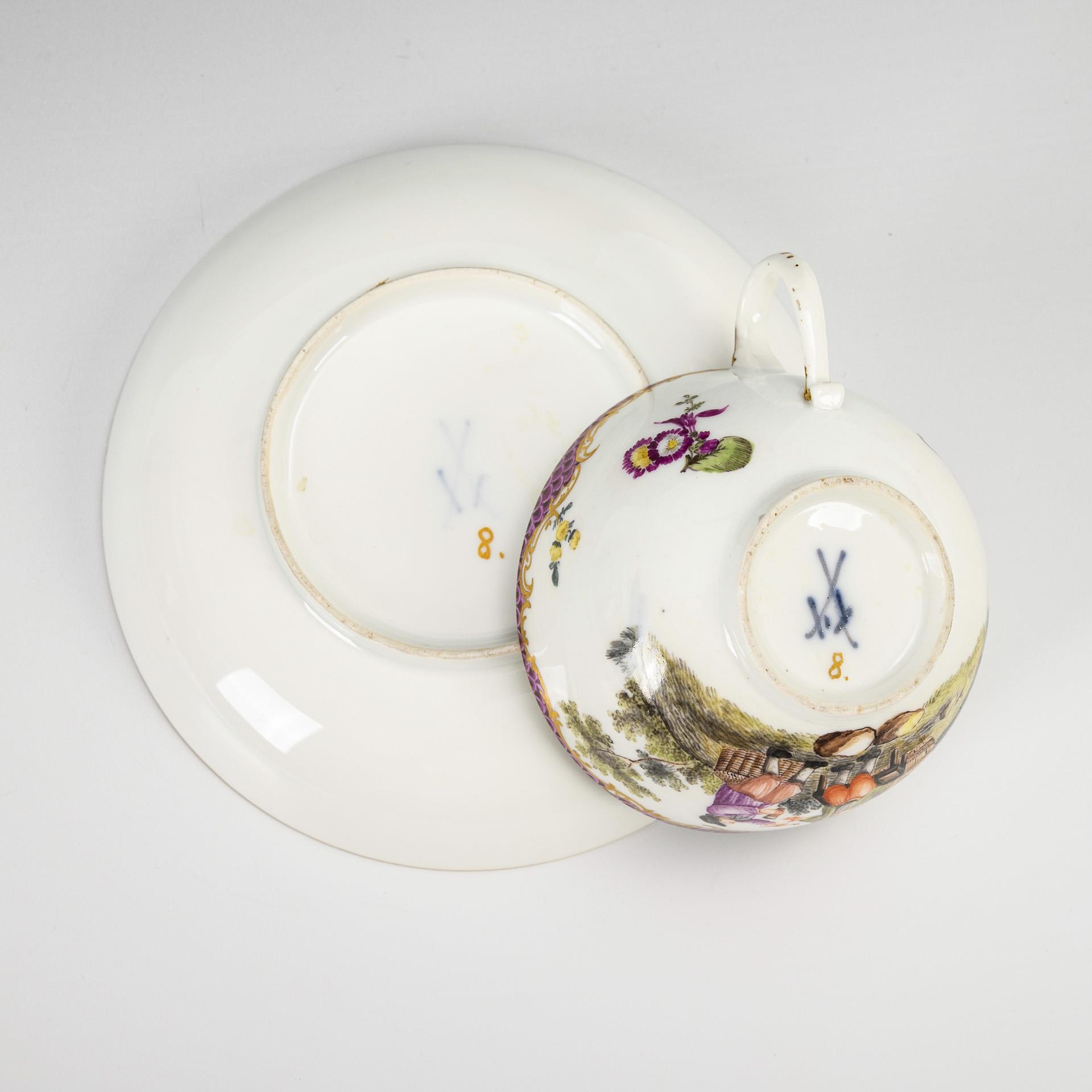 Sword mark and sword mark with dot, 2nd half of the 18th century, gold painted number "8" on cup and saucer.