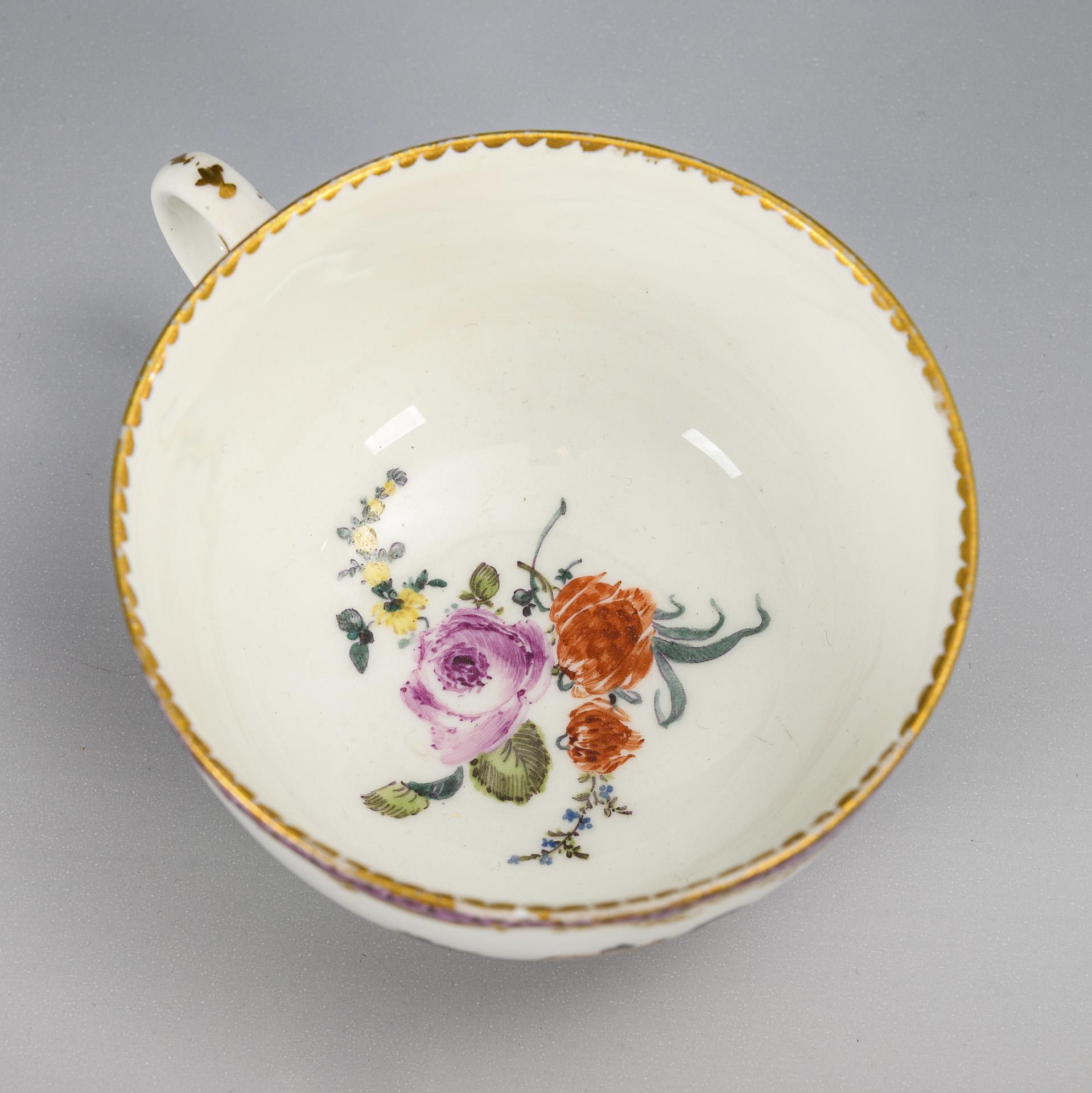 Polychrome painted, decorated in gold. Cup (h 4.5 cm), original saucer (Ø 13.5 cm). 220 g.