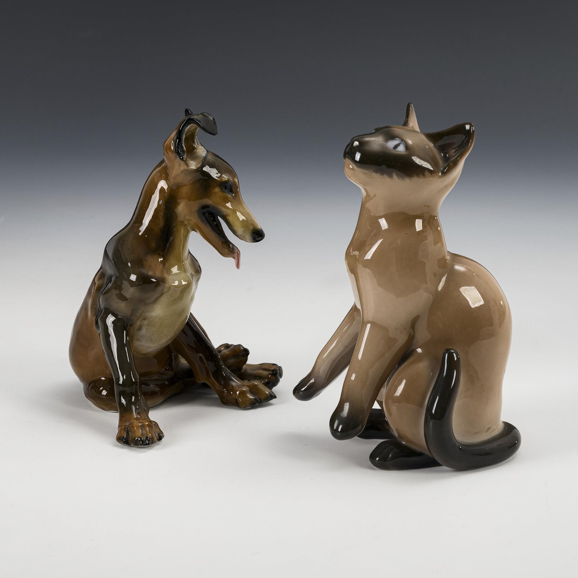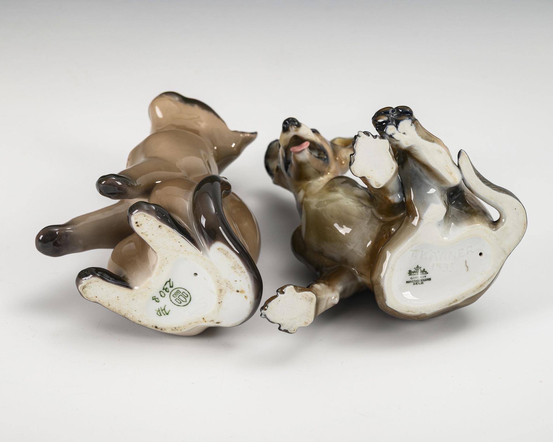 1x ROSENTHAL, 1 cut, model no. 1533, design 1934 by Theodor Kärner (1884-1966): sitting shepherd puppy / 1x BING & GRÖNDAHL, model no. 2308, design by Svend Jespersen (1895-1985): seated Siamese cat.