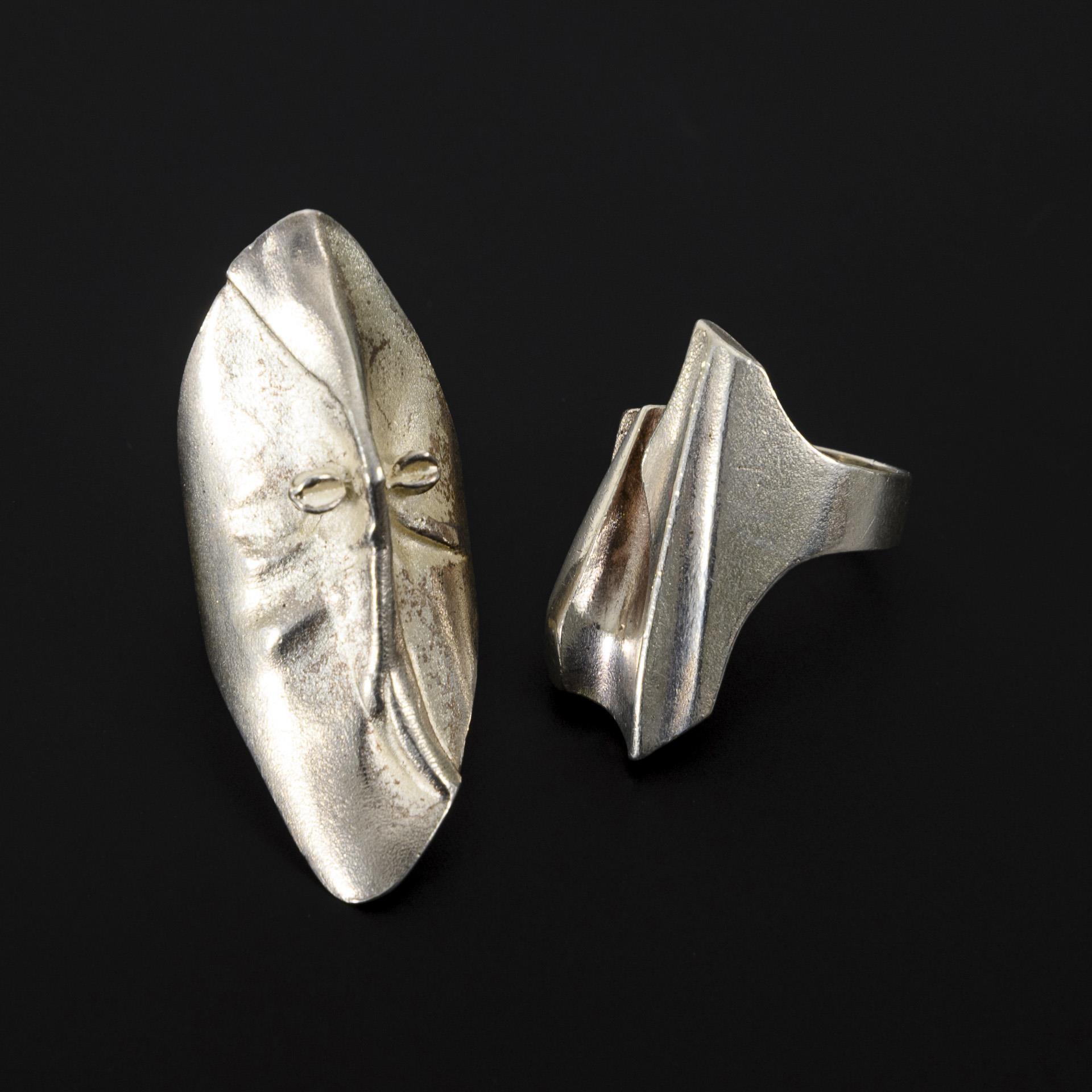 2 rings of the brand LAPPONIA in abstract, brand-typical design. Partly slightly patinated, traces of wear on the underside.