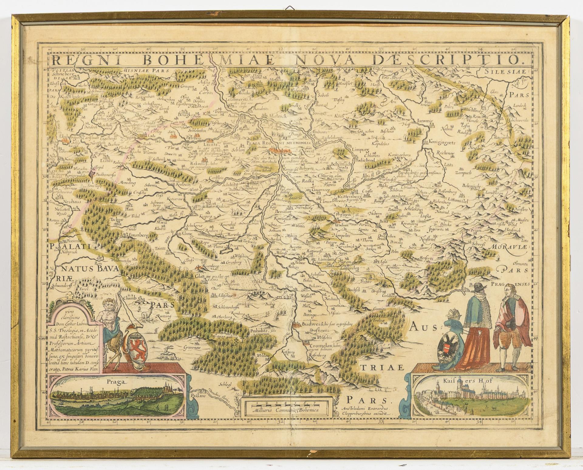 With smaller depictions of Prague and the "Kaisers Hof". Fold and traces of age, not framed.