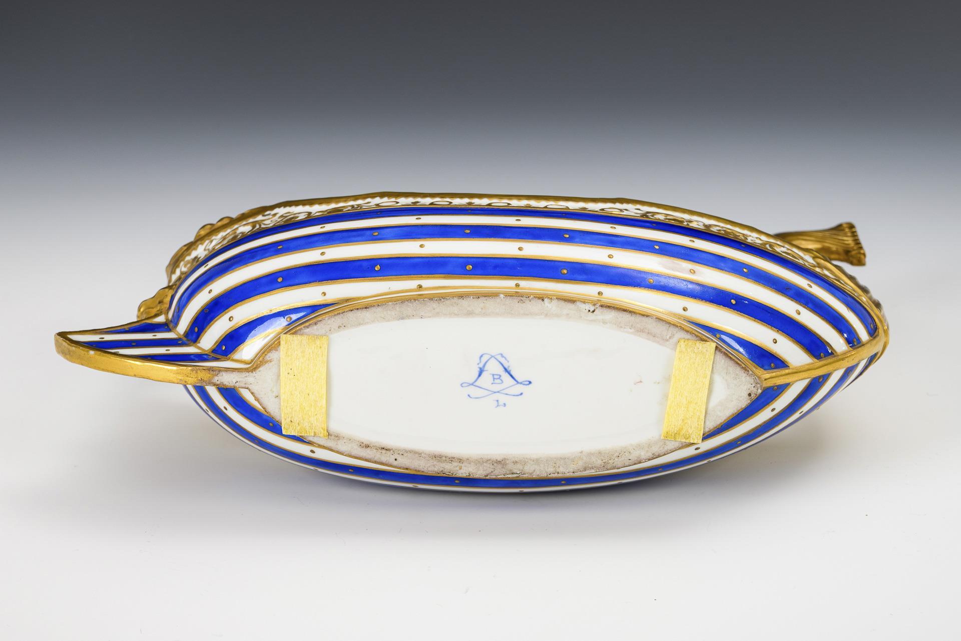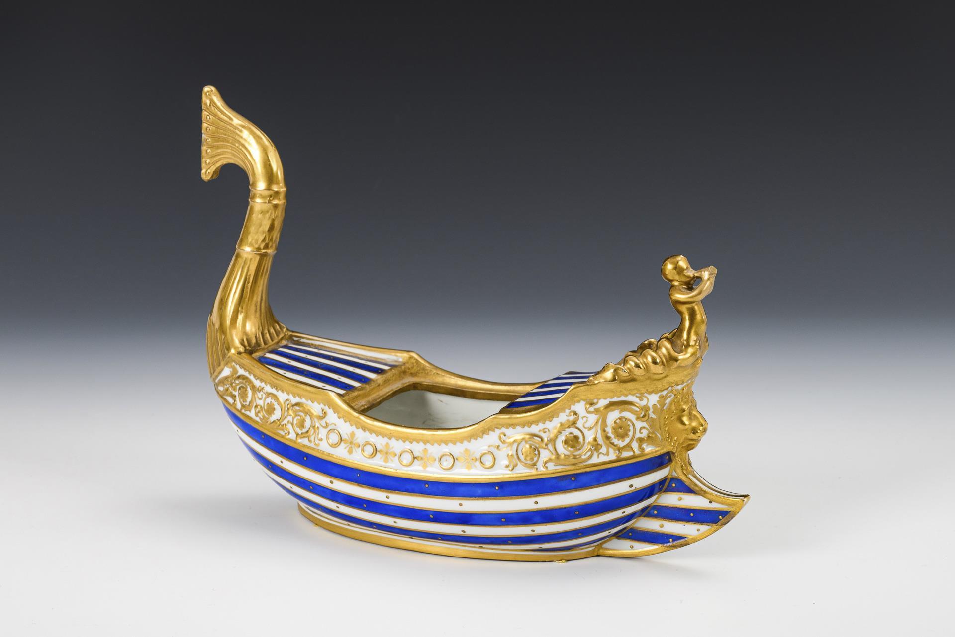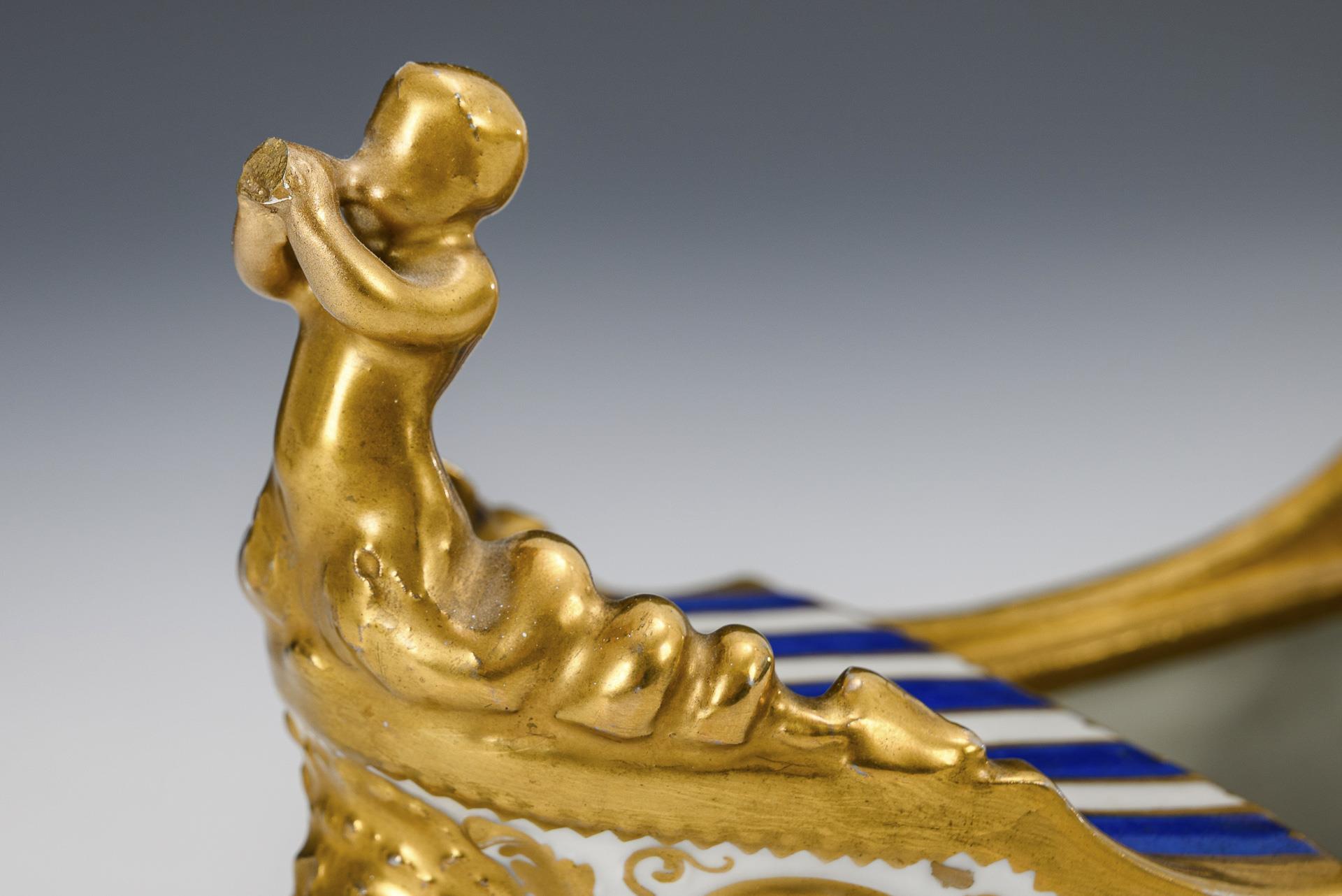Blue and white striped, richly decorated in gold. L 26 cm. 680 g.