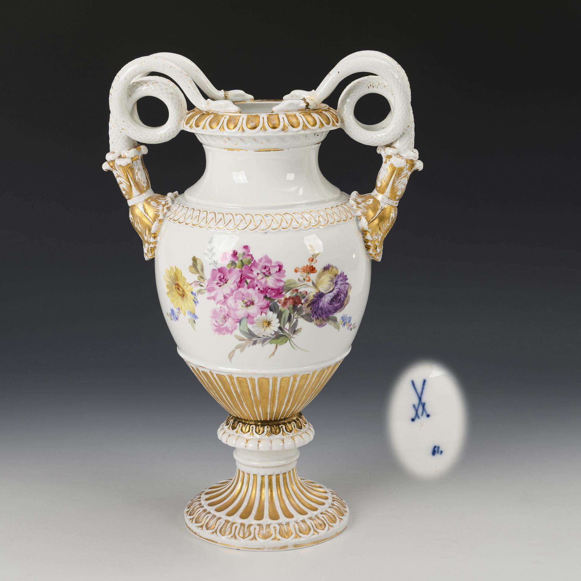 1 handle with restored hairline crack, 1 handle with restored chip, gold bronzing rubbed.