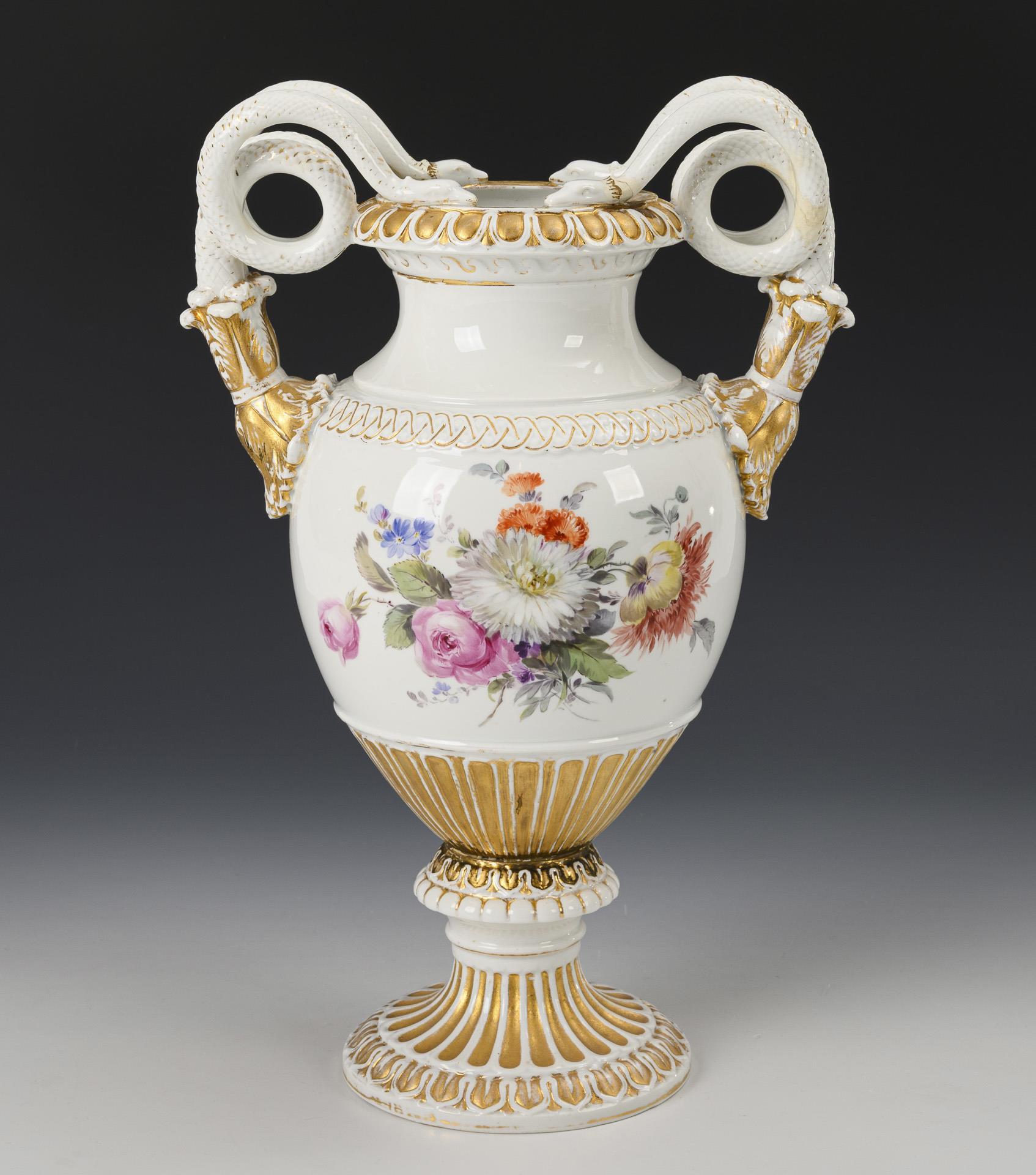 1 handle with restored hairline crack, 1 handle with restored chip, gold bronzing rubbed.