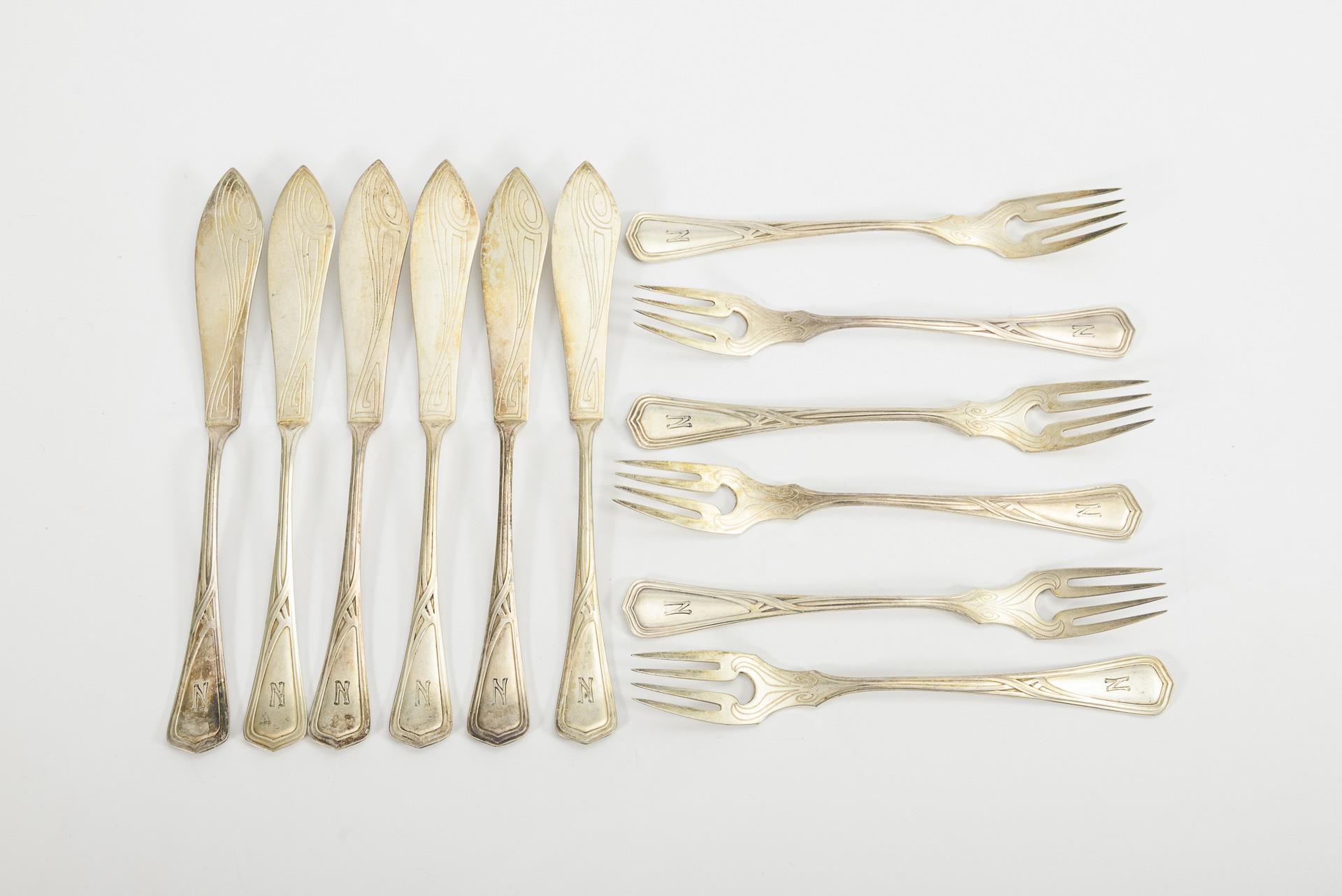 Silver-plated Art Nouveau fish cutlery.