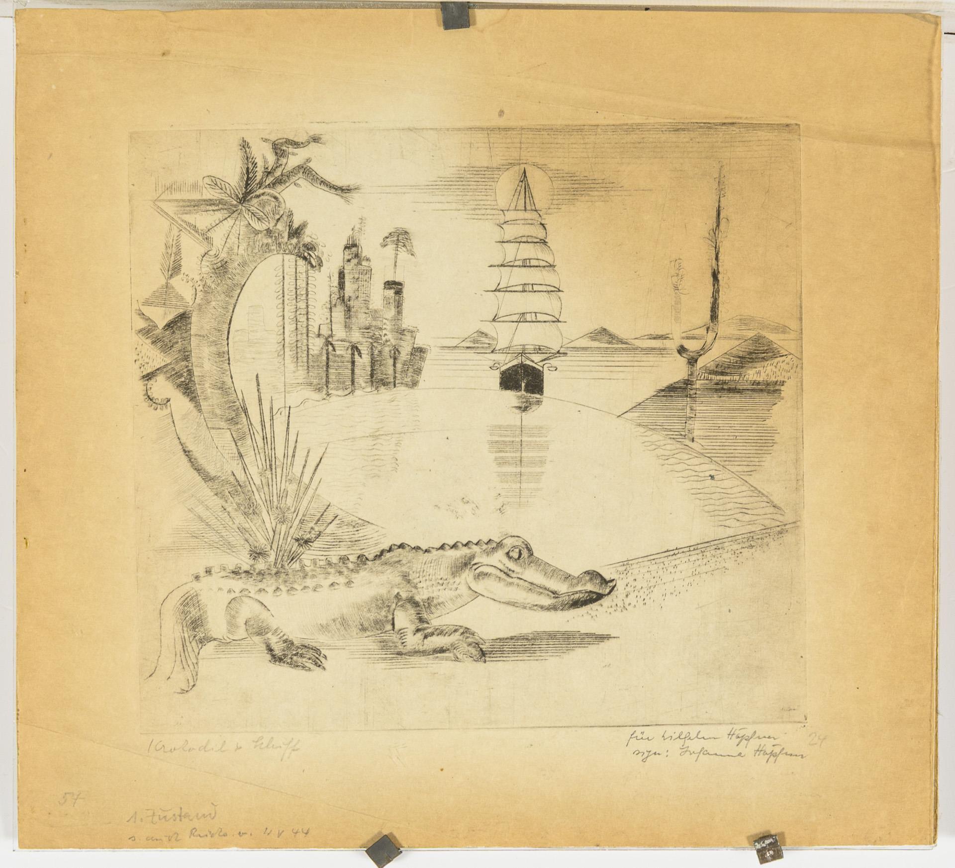 "Crocodile and ship"