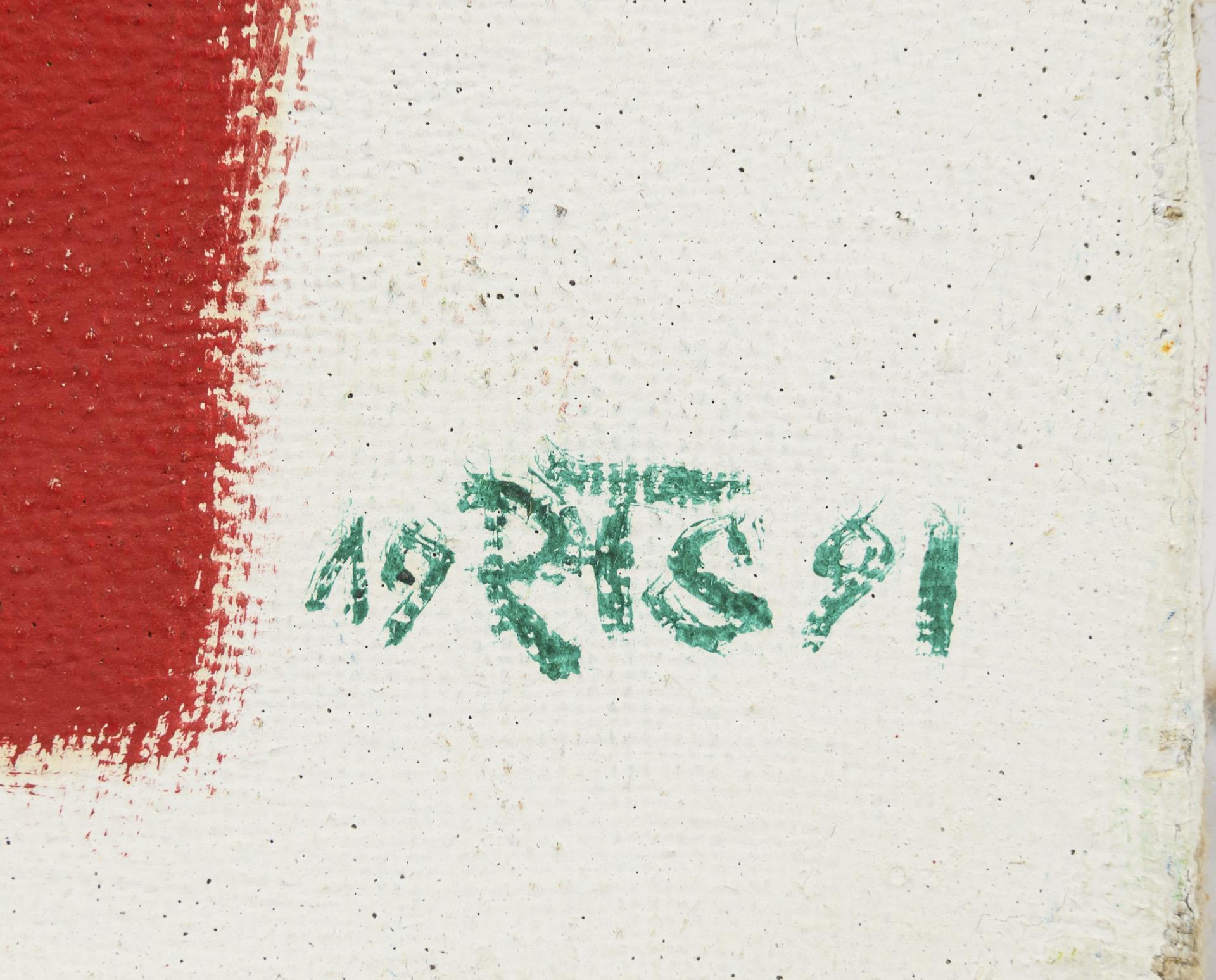 Acrylic/canvas. Monogrammed lower right, signed/titled on verso. 1991.