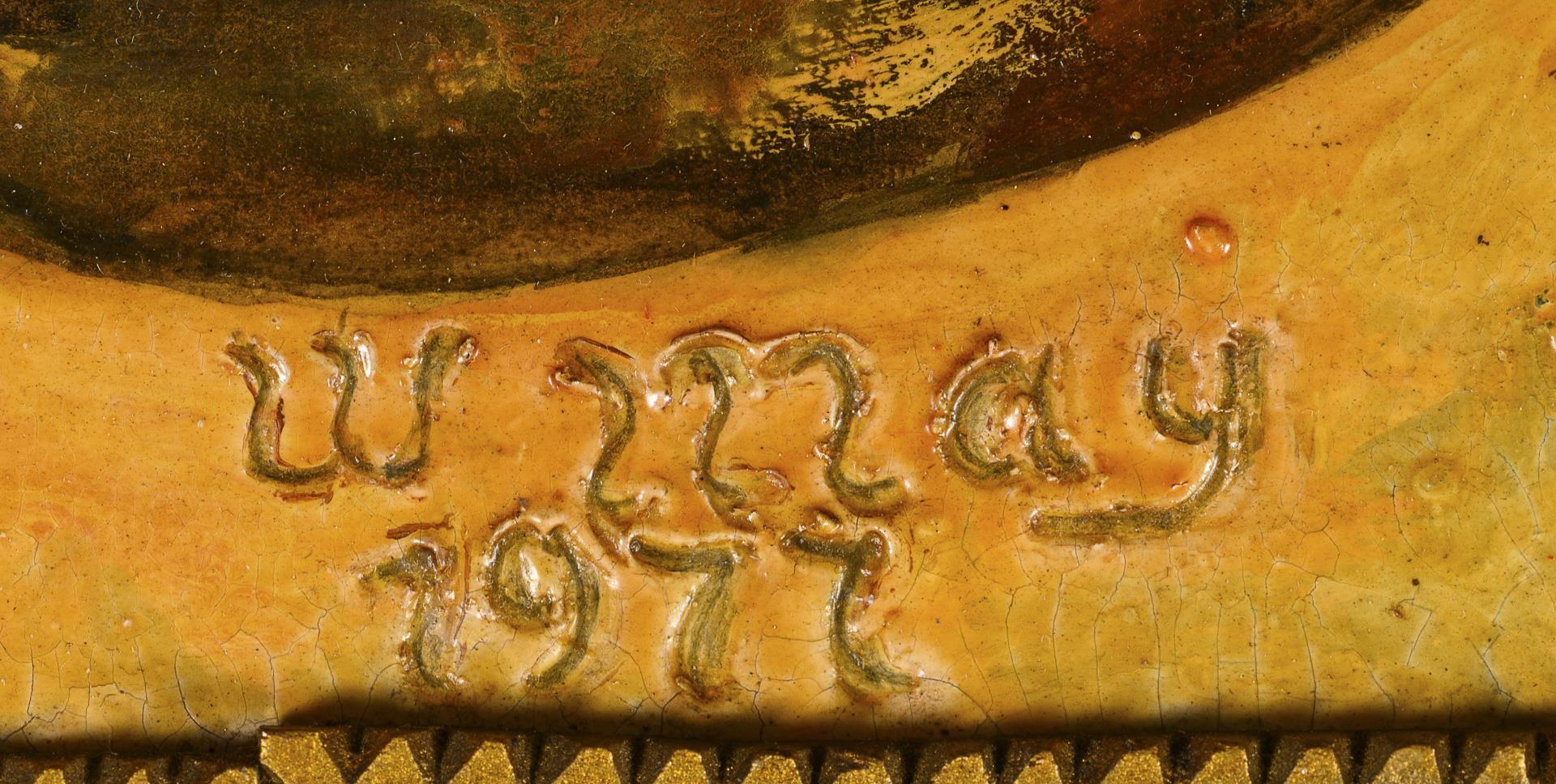 18 x 24 cm. Framed : 28 x 34 cm (modern gold-colored frame); 0.8 kg.