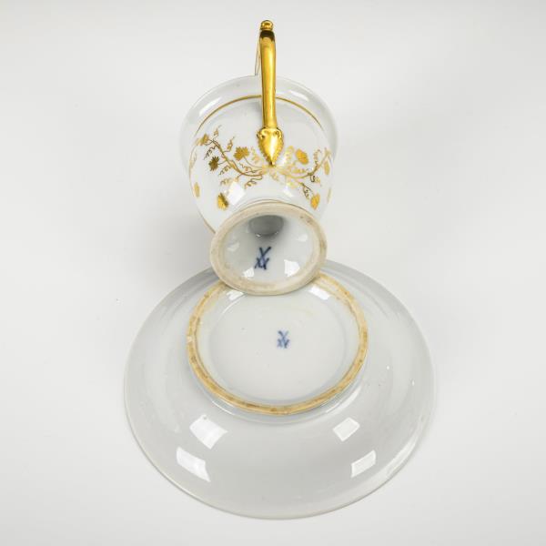 Sepia painting, gold decoration. Cup (h 10.5 cm), original saucer (Ø 14 cm). 300 g.