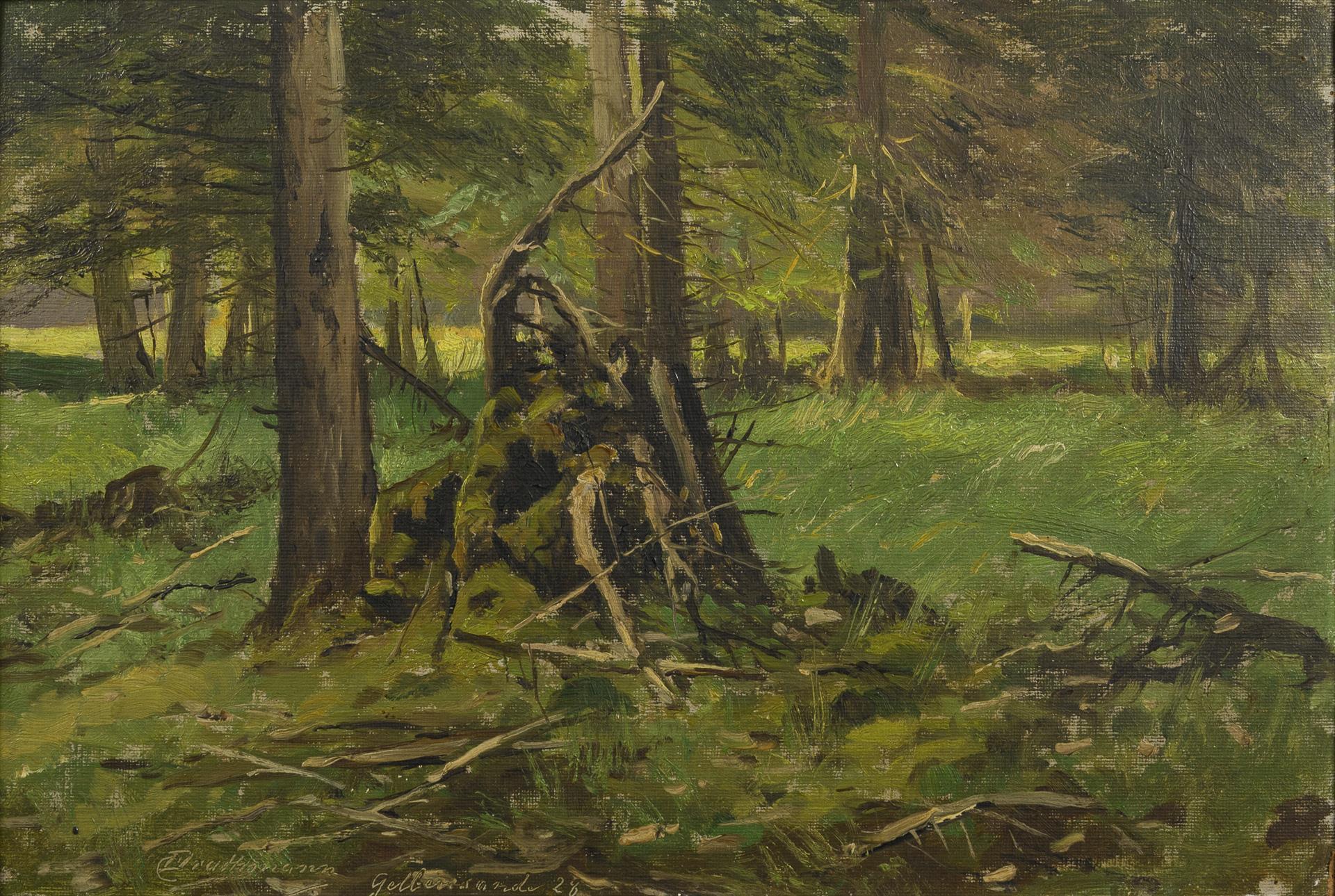 Oil/painting card. Signed lower left with the addition Gelbensande. (19)28.