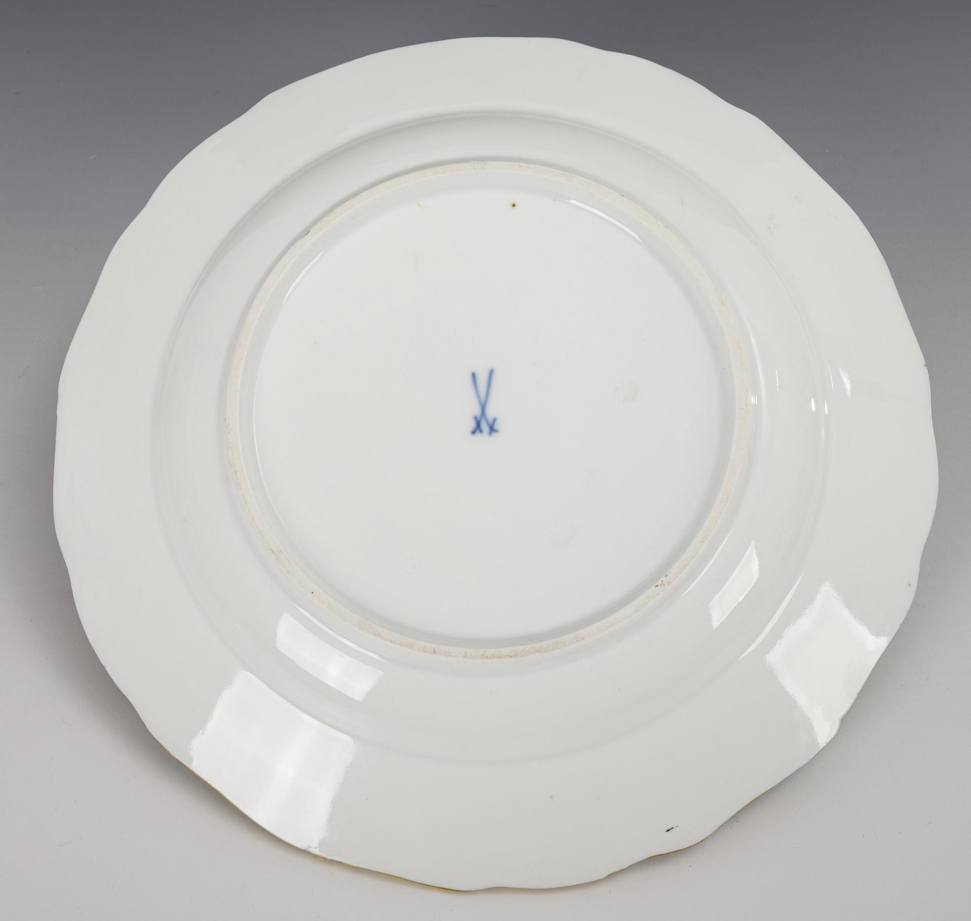 "New cut-out" shape. Dinner plate with cobalt rim, depicting a rainbow trout in the mirror.