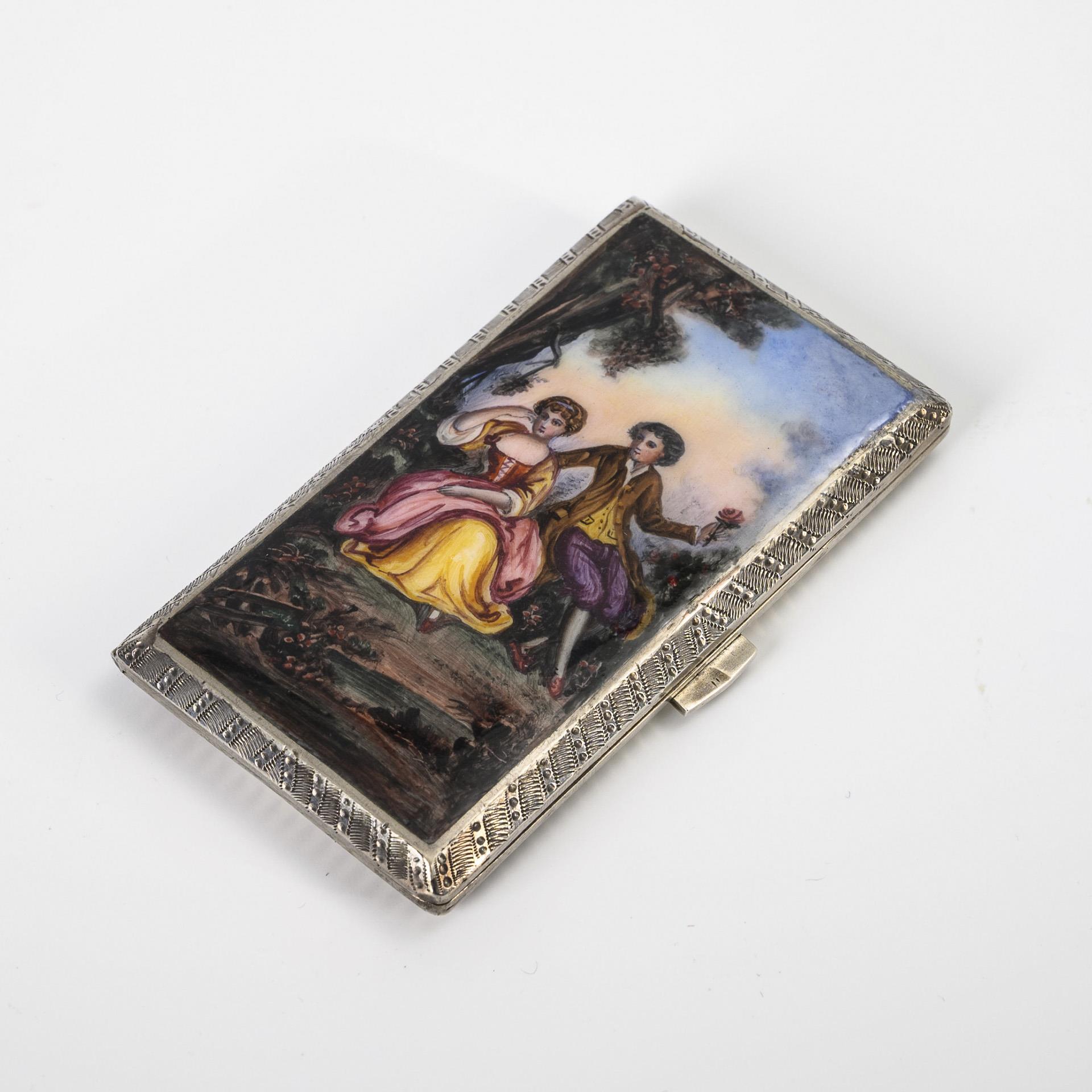Small cigarette case with enamel painting.